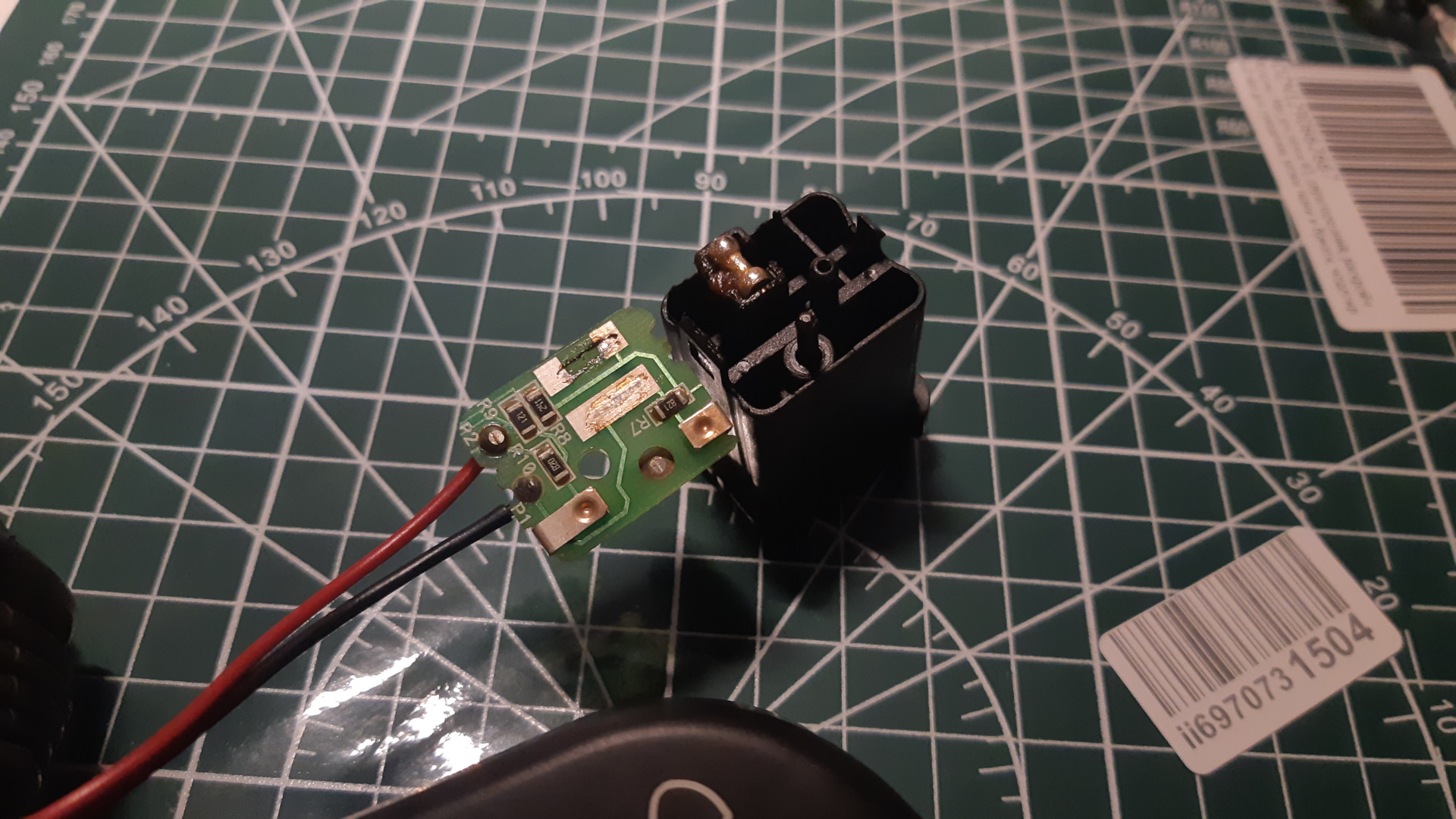 Делаем "инвертирование" кнопки при помощи пассатижей. Я ещё напаял медную пластинку на плату, но это позёрство. Никаких значительных токов там нет. После изврата с пассатижным инвертированием кнопки, нужно будет подогнать по месту толкатель на клавише (то есть, укоротить его кусачками по месту).