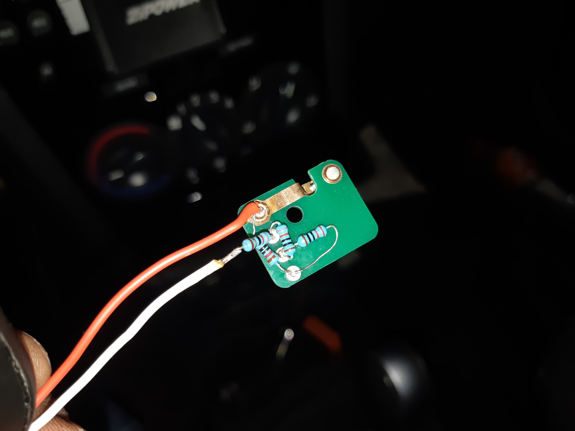 3. Разбираем ручку 90560990 (выдергиваем кнопки и вынимаем плату) и собираем прямо на плате пакет резисторов по схеме: