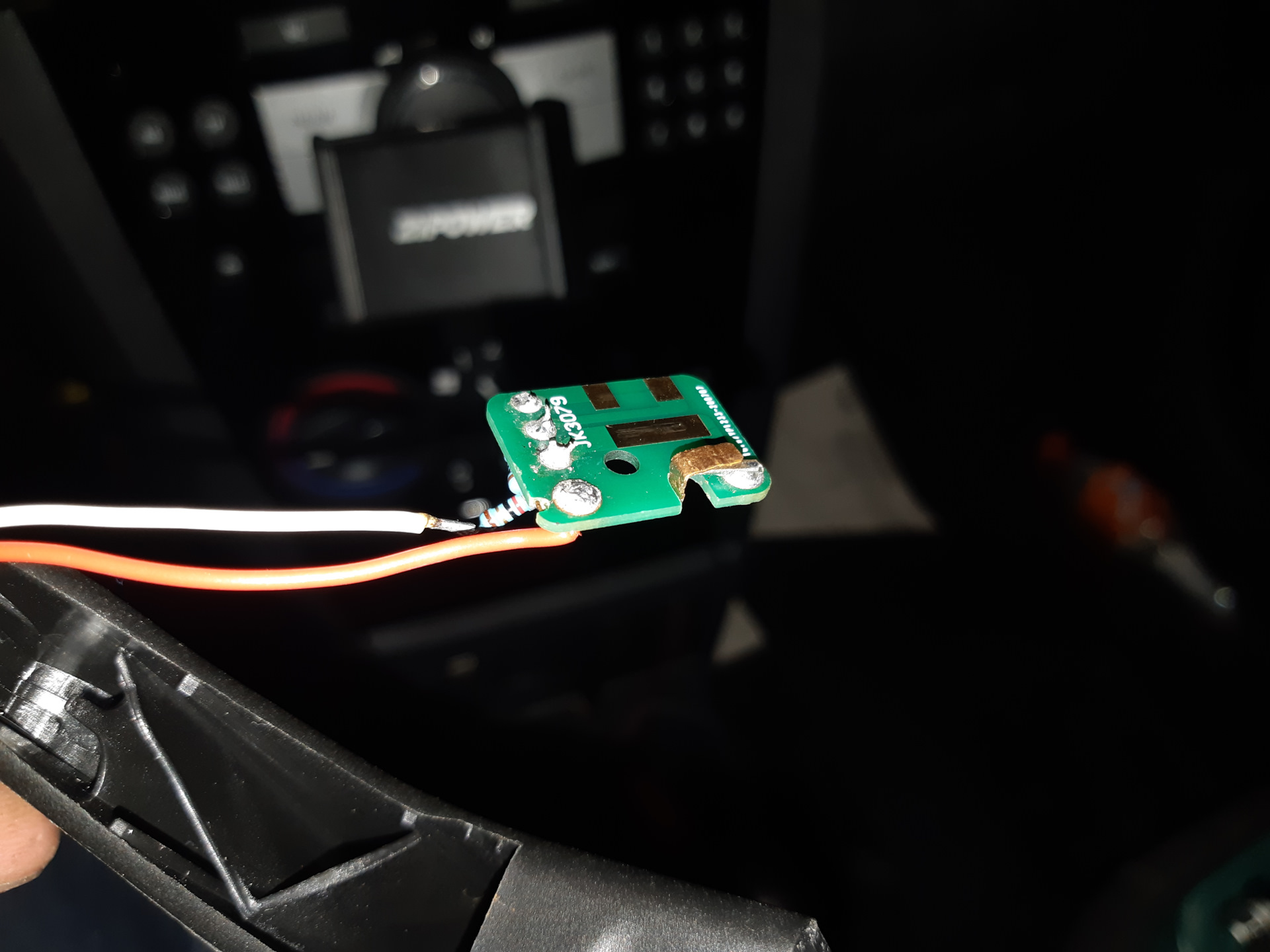 2. Пилим родной переклюк и приобретенный 90560990 и собираем из них внешнюю копию 9185414. Для соединения ручки в месте распила, я использовал обломок сверла 3мм и эпоксидный клей. Сверло не позволяет ручке переломиться, а эпоксидка вращаться половинкам вокруг сверла. На фото видно куда подпаивать провода от пульта круиза.