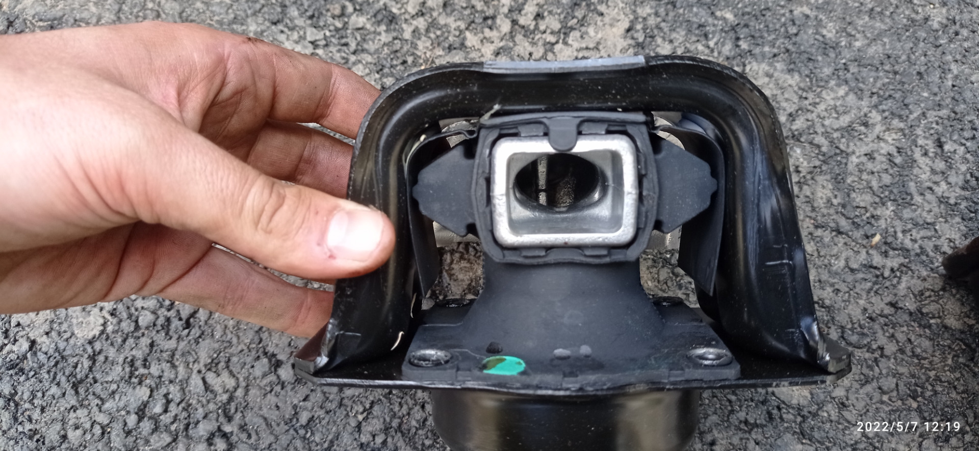 Появилась вибрация на хх, и при движении в натяг, а дизель часто ездит в натяг, по этому стало меня это конкретно задалбывать. Заказал оригинальную правую подушку, не оригинальные и на бензинках не хвалят, а для вибронагруженного дизеля качество данного узла является решающим. Опыт замены данного узла у меня есть еще со времен 307, по этому штатный домкрат и дощечка под двигатель, головка Е14, торкс вроде Т50, открутил — прикрутил. Готово. Старая подушка не дырявая, масло внутри есть, но она просевшая, и при качании болтается легко, новая тугая.