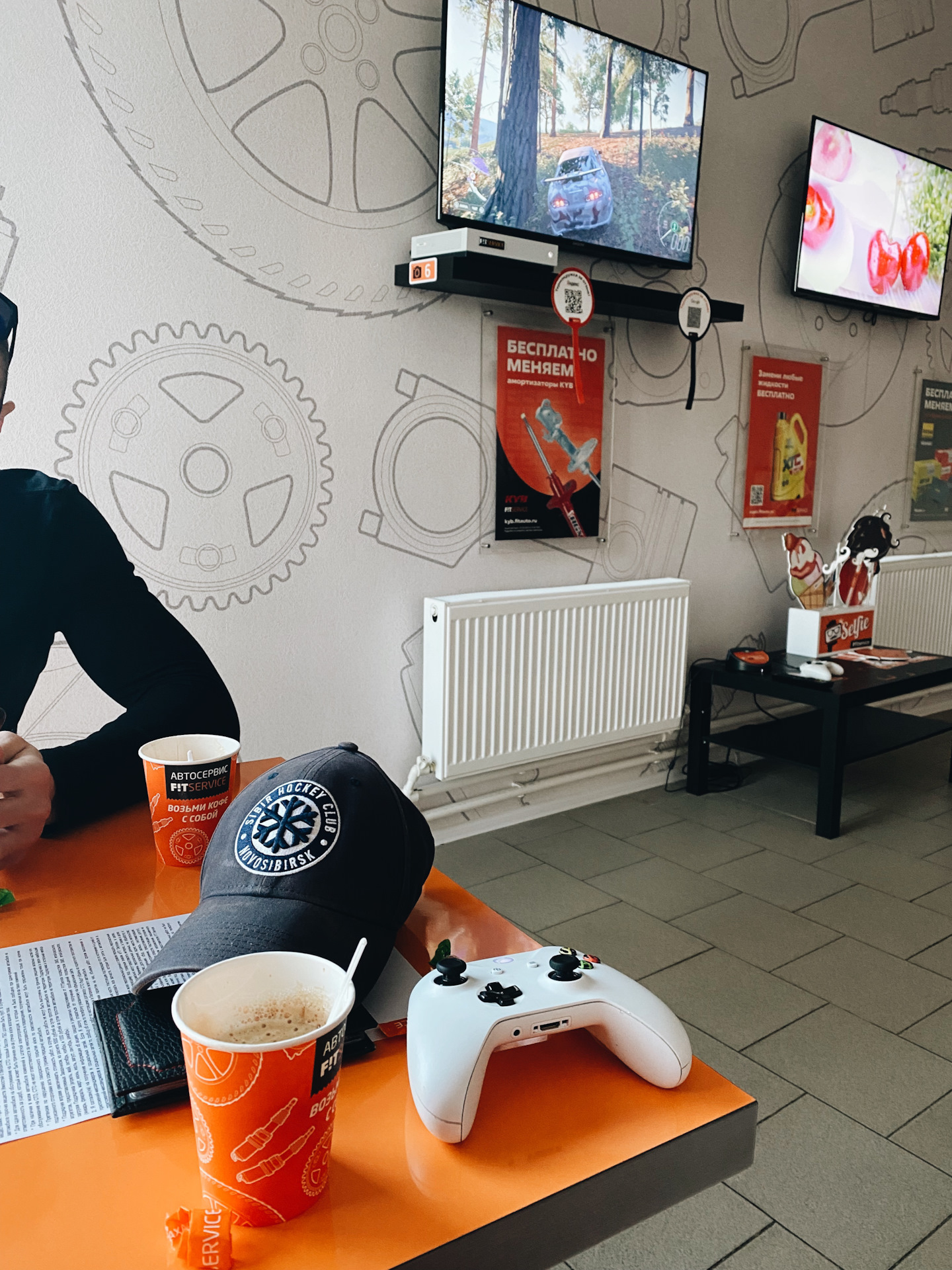 На замену масла был записан на 8 мая, а с подвеской решил не откладывать в долгий ящик и по выявлению сразу исправили и чтоб уж по ней закончить наверняка заехал в FIt Servise на сход развал, классная зона ожидания у вас, очень зашло и огромный плюс к тому что используете накидки на сиденьях и руле☝🏻