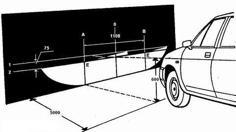Экраном, кстати, может быть стена или высокий забор. Необходимо начертить линии, которые будут в пересечении или своими краями обозначать важные точки. Высота нижней линии должна соответствовать расстоянию от земли до противотуманных фар. Также необходимо разметить расстояния от центра машины, если смотреть на нее в фас до центров противотуманных фар. Верхняя линия — это удвоенное расстояние от пола до центров «противотуманок». В итоге у вас получился разлинованный холст экрана, где есть 2 точки центров фар и линии ограничения верхней и нижней границы света.