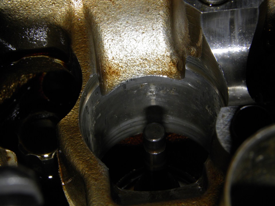 Когда уже в конце начал ставить толкатели обратно, толкатель выпуска 4-го цилиндра не захотел идти назад(((