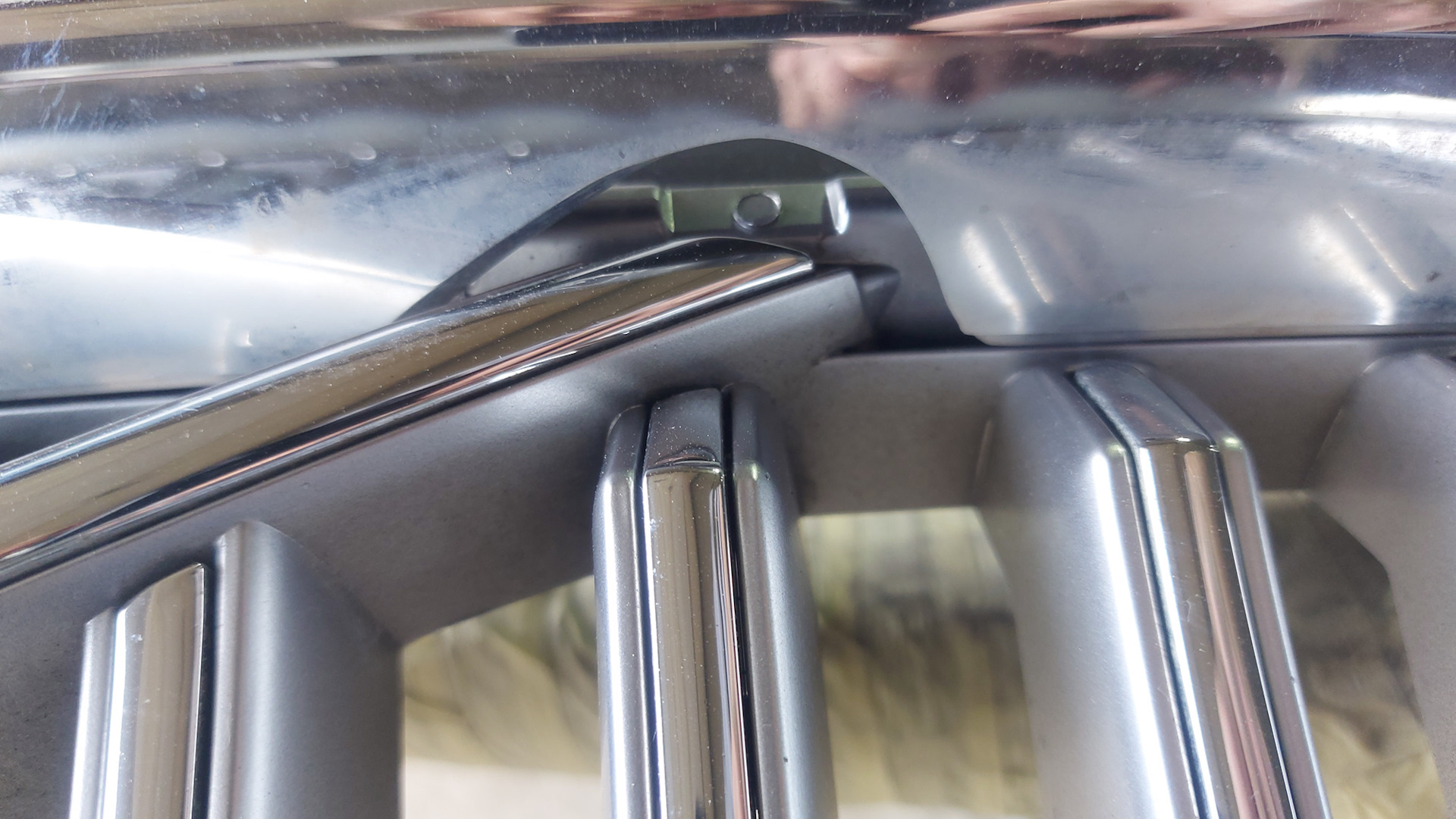 Далее встает вопрос в тех самых двух саморезах (крепят решетку к бамперу). Их местоположение, крайне неудобное для демонтажа без снятия бампера. Но снимать бампер и тягать туда-сюда весь пластиковый крепеж, крайне не хотелось, и это не в силу лени, а по причине того, что с каждой подобной операцией крепеж расшатывается, зазоры увеличиваются и.т.д. ИМХО!