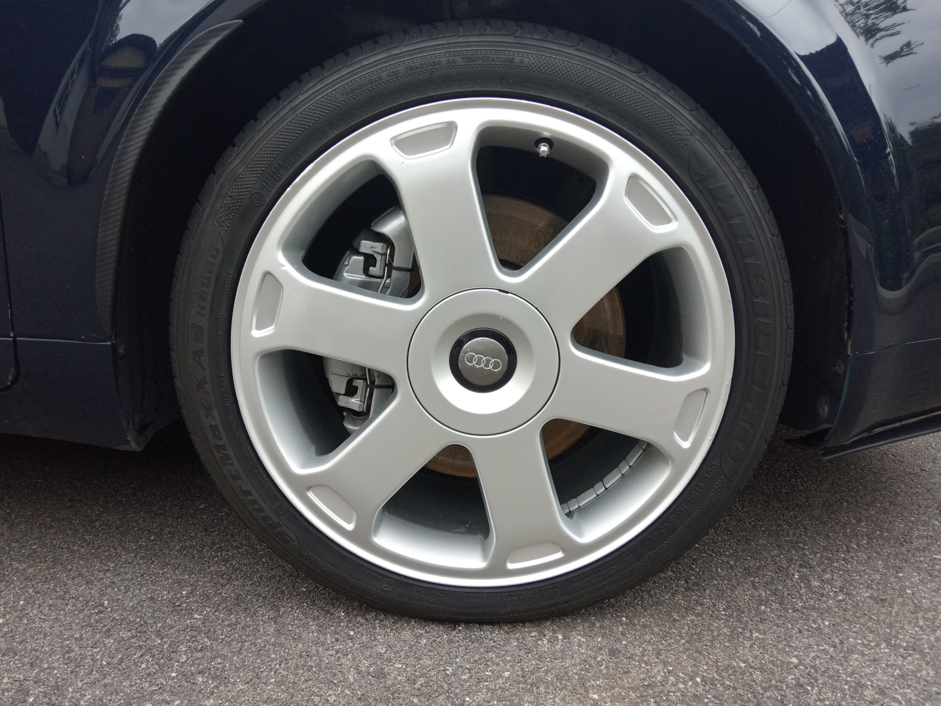 Ну наверное больше года я искал и выбирал себе колеса. То рисунок не то, то параметры не те, то цена конь. И вот совершенно случайно подвернулся такой вариант и я не смог отказаться. Были заказаны диски r18. По приходу их начал поиски резины. Выбор пал на китай, так как цена на не китай совсем конь. И вот наконец собран комплект на резине 235/40. И наконец уже установка. На зад были кинуты проставки 17мм. На перед тоже просятся мм15, ну пока так.
