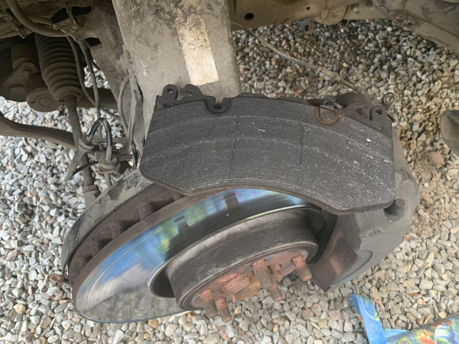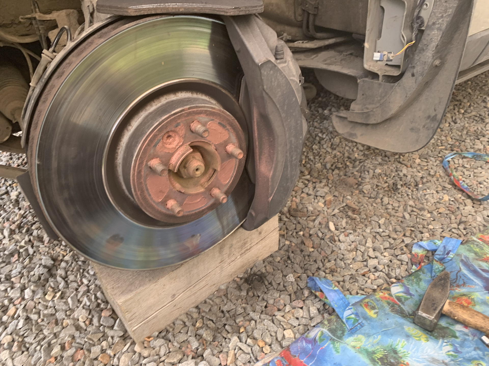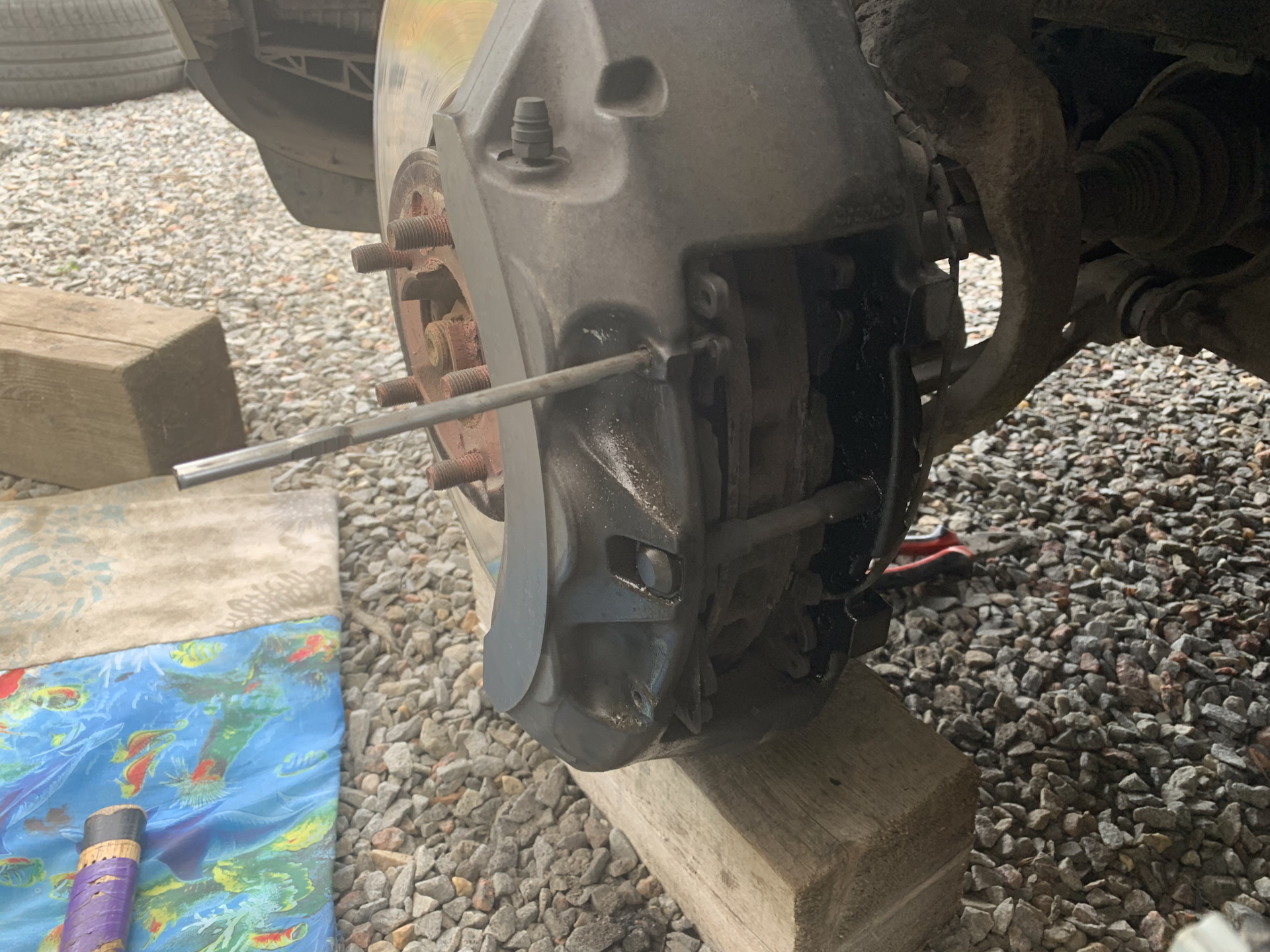 Далее ставим диск на предварительно отчищенную и смазанную ступицу. А так же прикручиваем суппорт на место.