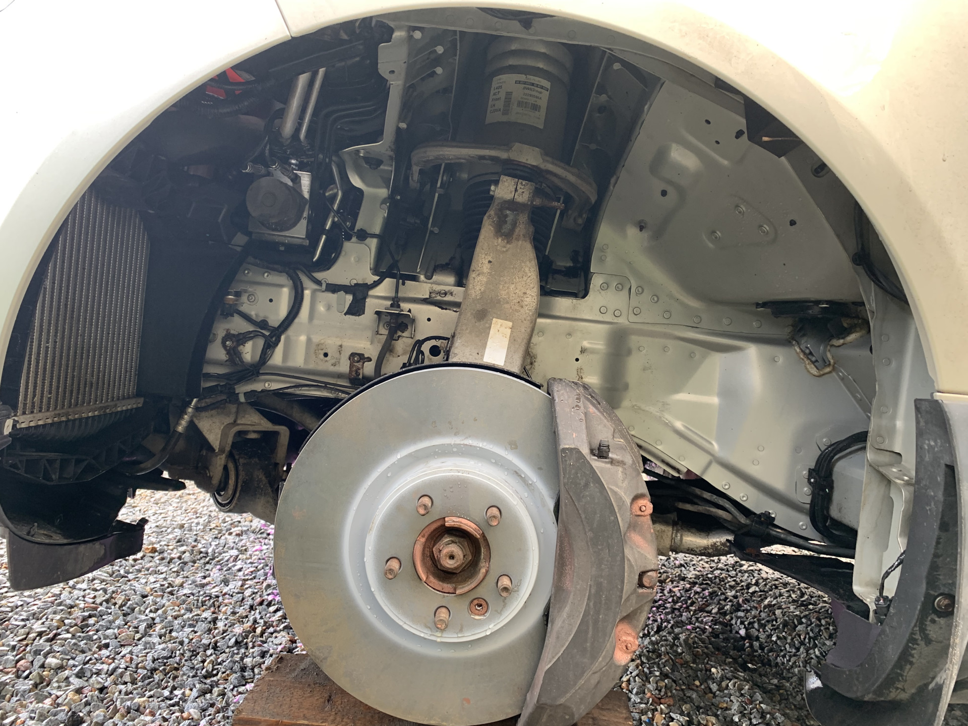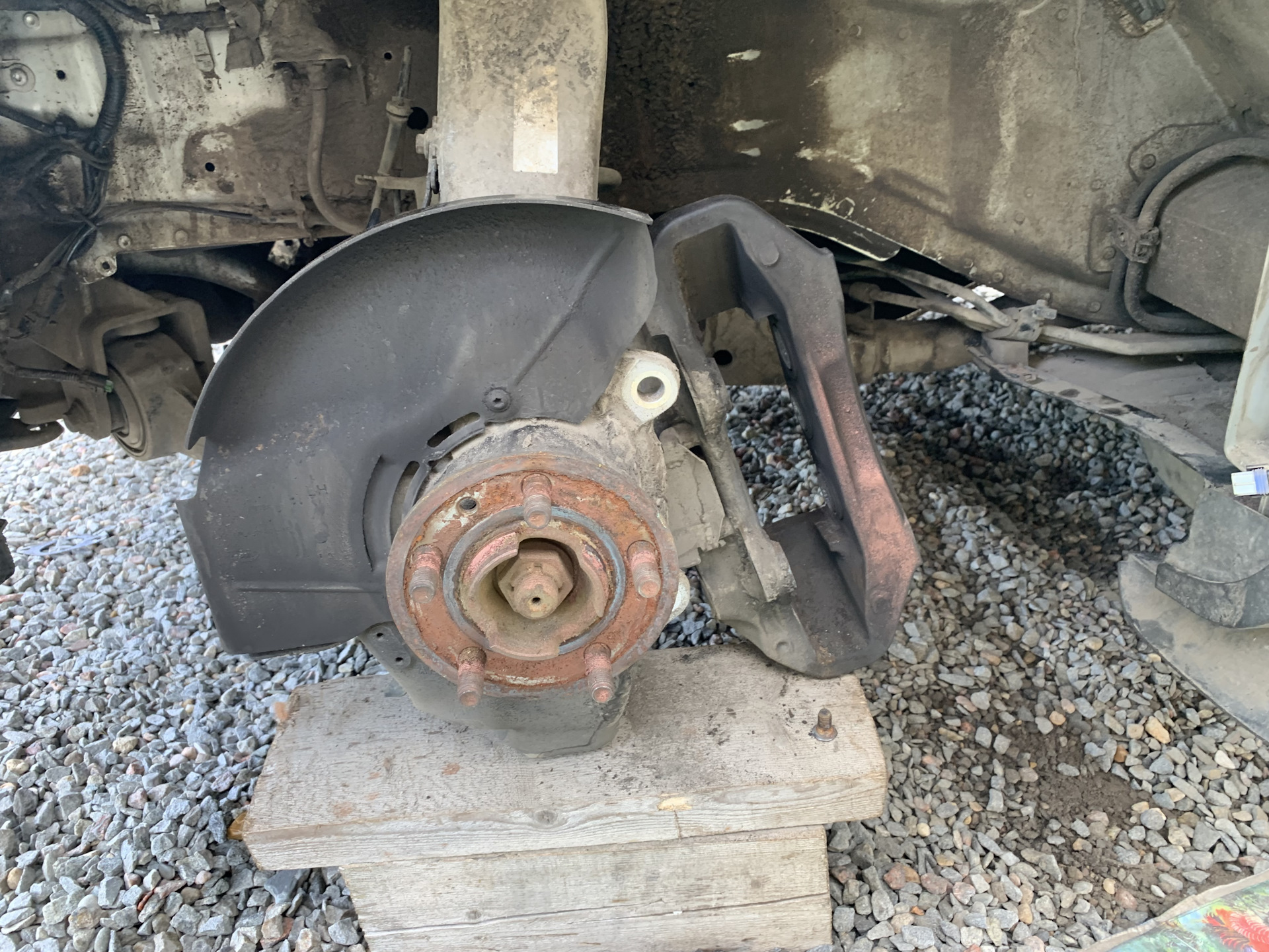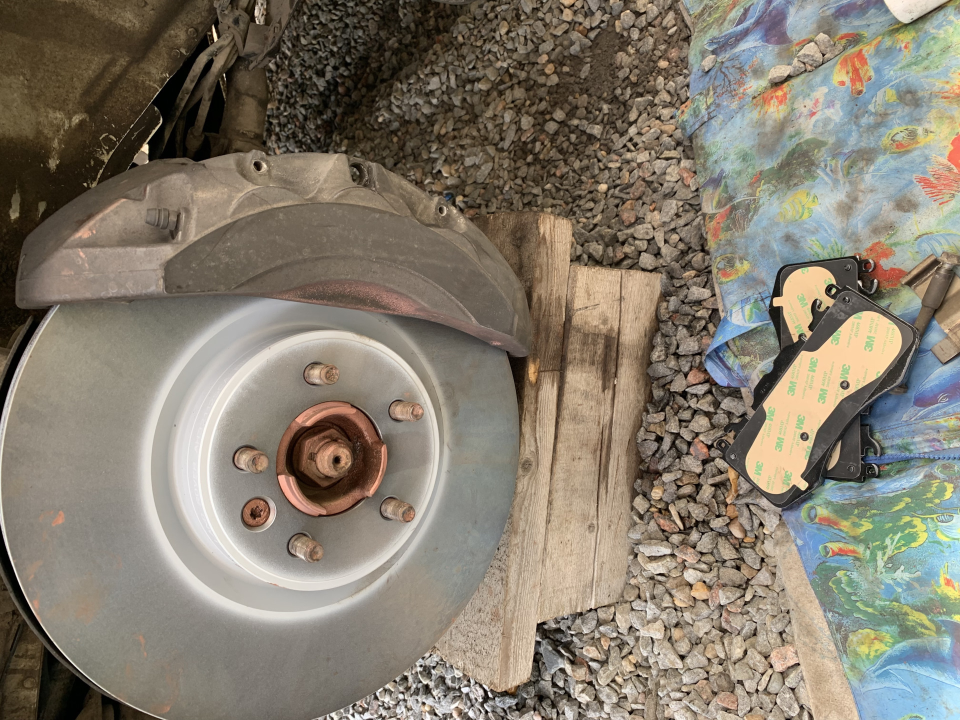 Далее ставим диск на предварительно отчищенную и смазанную ступицу. А так же прикручиваем суппорт на место.