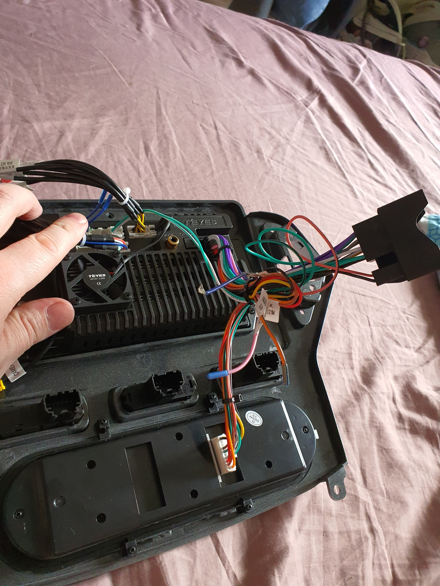 Прикрутив магнитолу и климат на рамку, пошел устанавливать. Сначала возникли непонятки как это все соединять. Я думал что родной климат полностью убирается и остаётся только от Teyes, но на родном оказалось 2 разъема и больших а на новом один и маленький. На основной косе магнитолы был только один разъем подходивший как на климат так и на canbus( который был в комплекте). Продавец настаивал что внешний canbus не участвует в схеме(магнитола использует canbus из родного климата) что вызывало сомнения, т.к на Ownice он был в схеме.