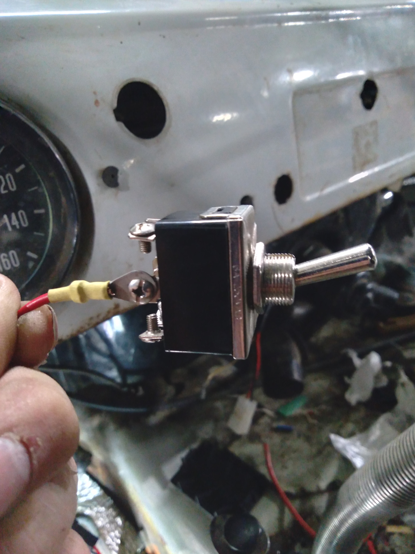 С дворниками на этом всё. Наконец дотягиваем красный провод до тумблера печки: