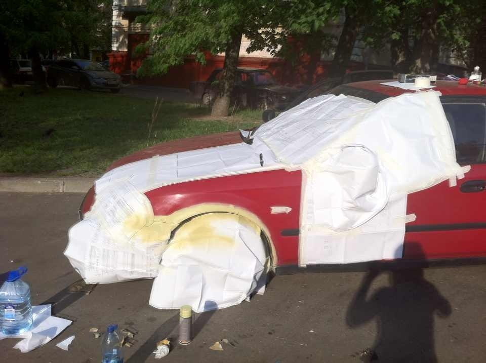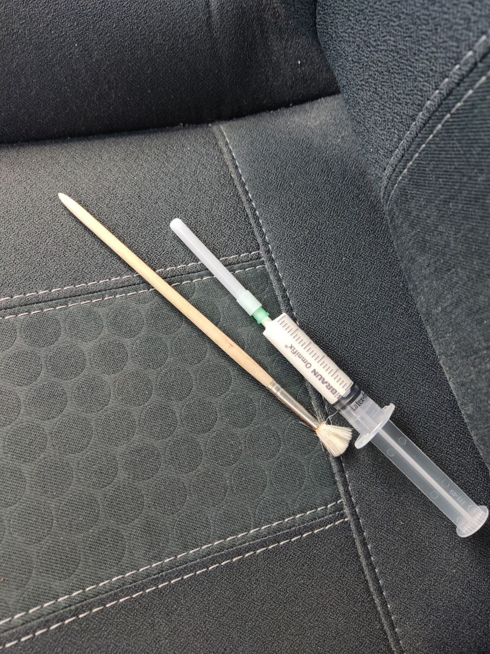 Видно там не будет, так что находим на балконе грунтовку, в аптеке шприц, арендуем у дочки кисть.
