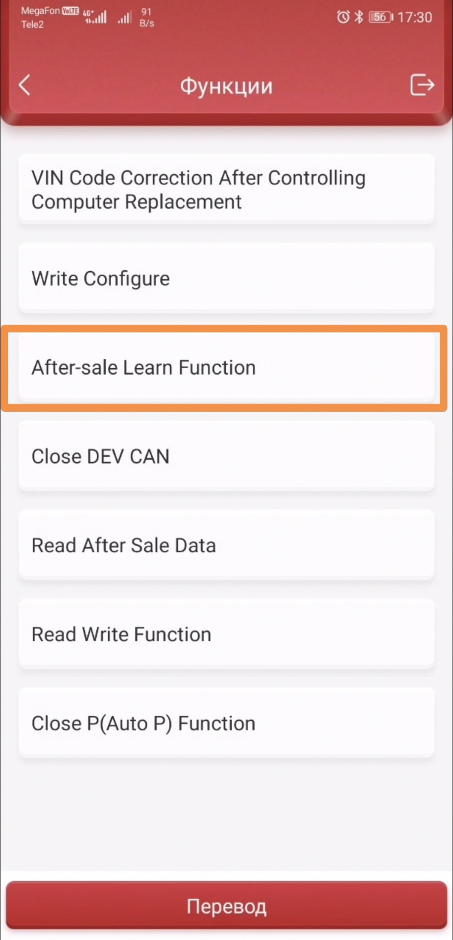 4. Включаем зажигание (положение ON, с запущенным двигателем). Заходим в блок TCU, выбираем Special Function, там пункт After-sale Lesrn, нажимаем.