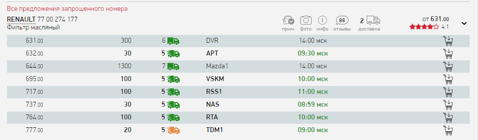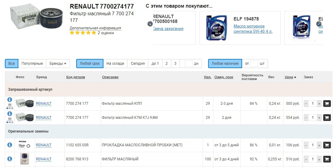 Вот например подбор фильтров по марке и модели применительно к Рено Дастер первого поколения.