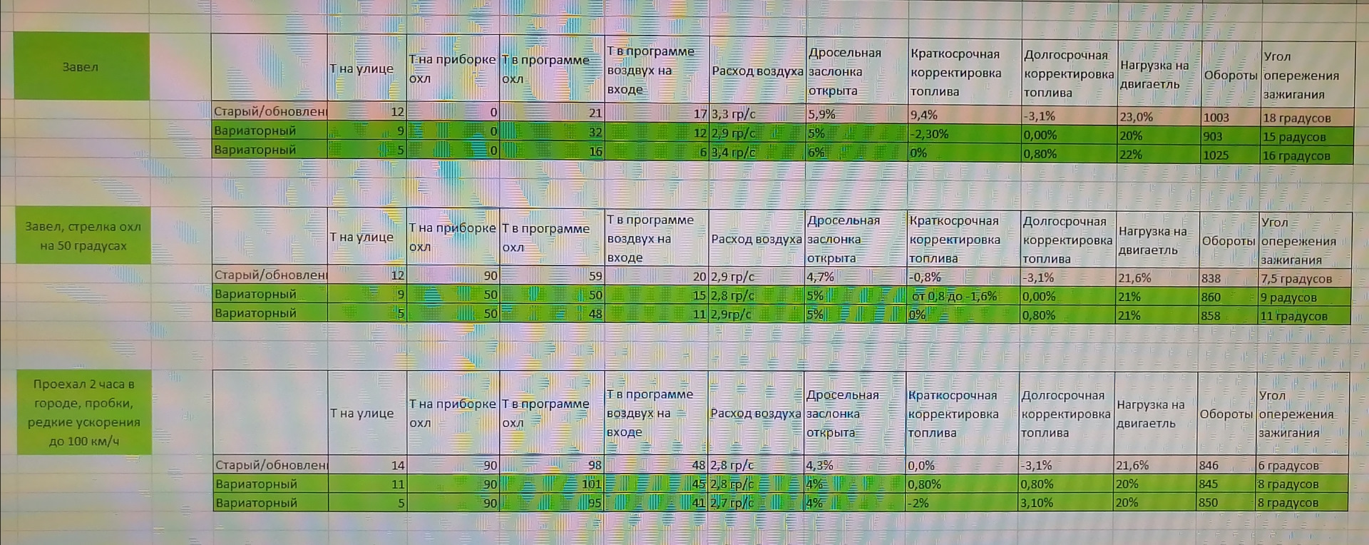 Общие выводы: с точки зрения цифр них.на ничего не меняется при смене, разве что нагрузка на двигатель на 1-2% меньше на вариатором впуске. Температура на входе в двигатель не зависит от этой игры, ну разве что на какие-то доли.