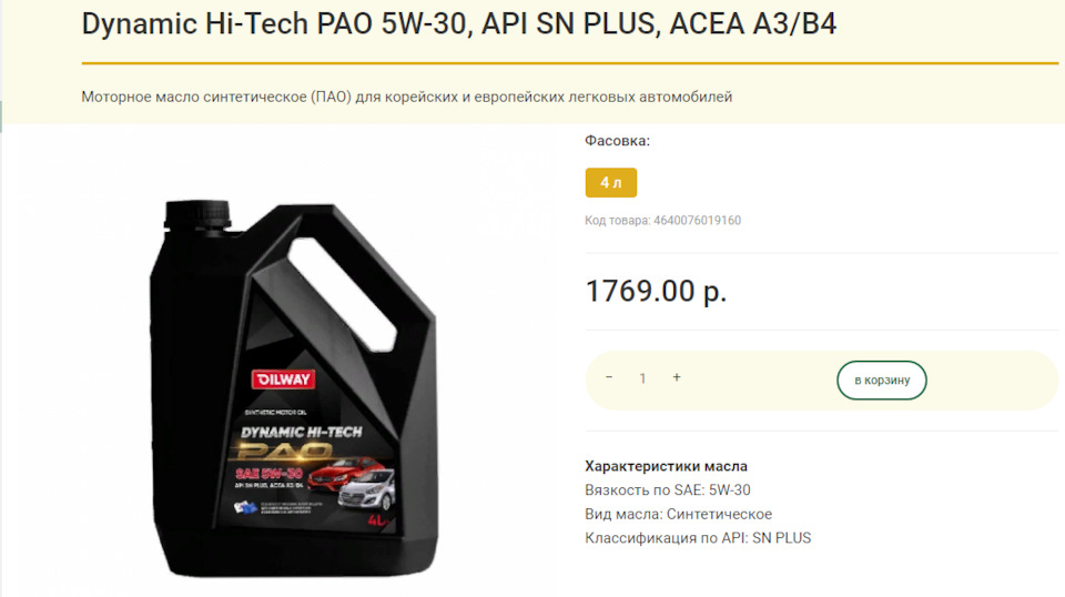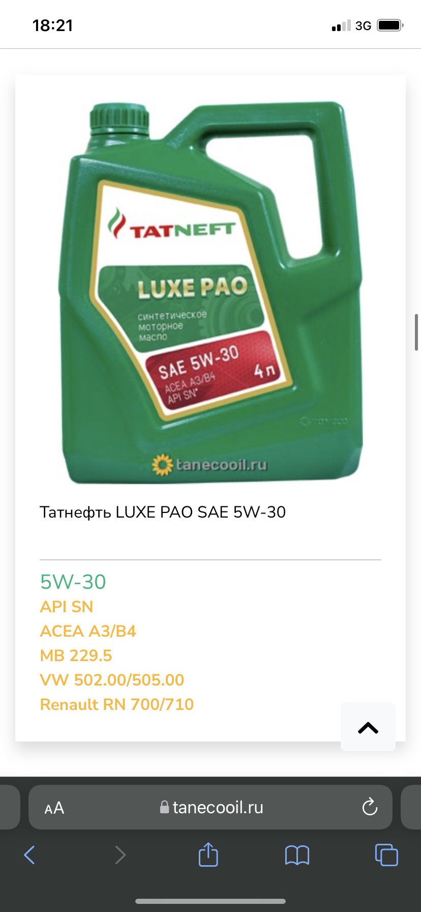Если кому интересно вот ссылка на это масло sintec-masla.ru/products/…E-5W-30-ACEA-A3-B4-1.html