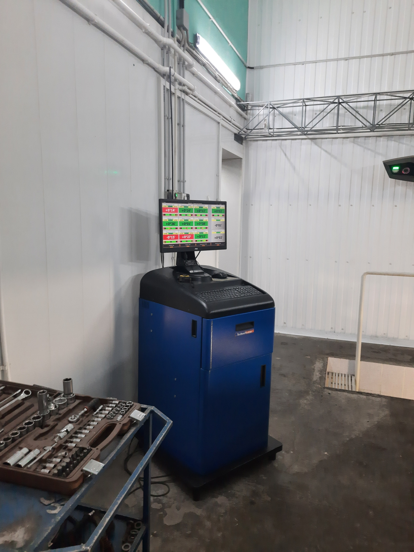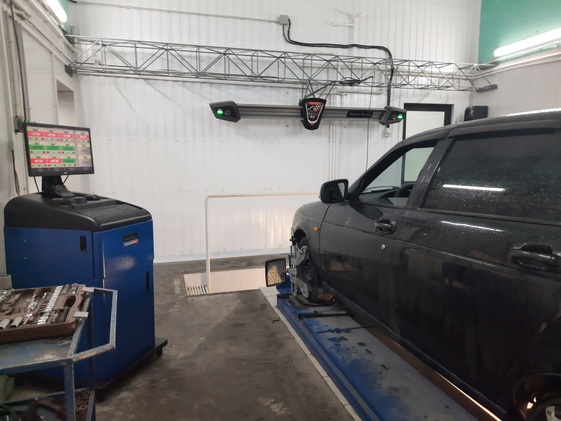 Мастер выставил все в ноль, за исключением левого продольного — сильно закис болт, так что угол кастера чуть меньше установленного.