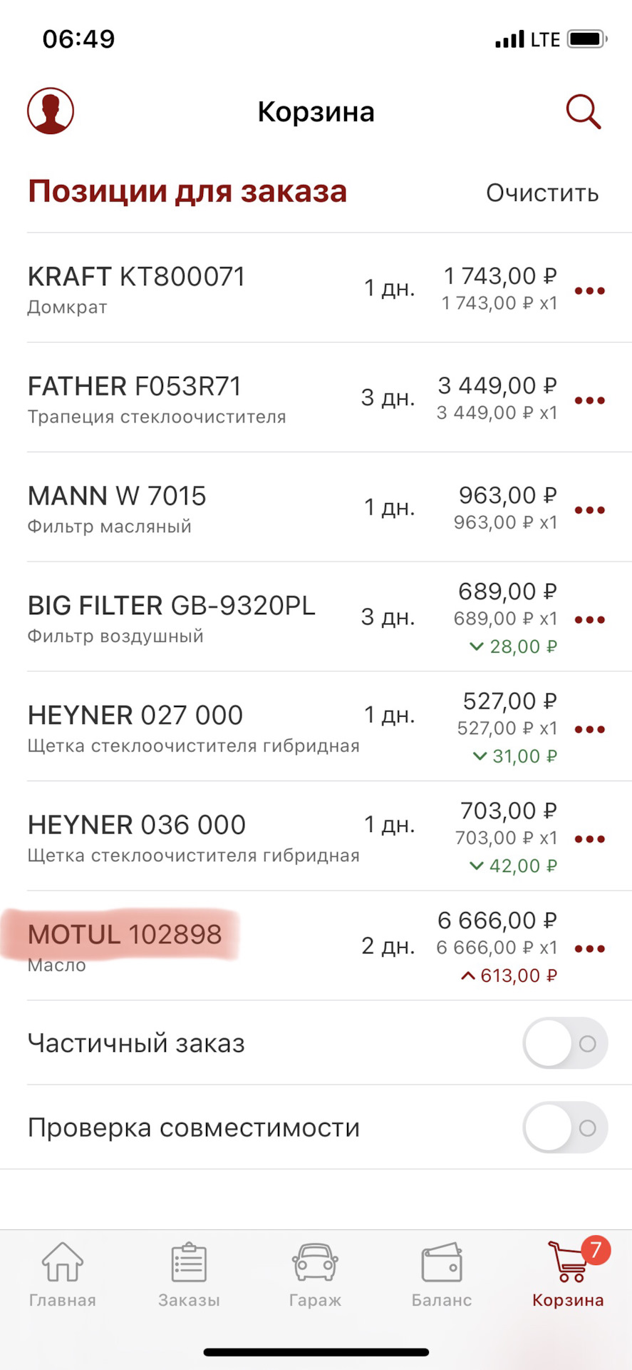 Положил в корзину масло MOTUL, так как Лукойл FD либо нигде не найти, либо цена под 5000 рублей, что просто космос для этого масла. До СВО заливал MOBIL1 FORMULA F, сейчас цена тоже на него космос, увидел MOBIL 5л по цене в 6000 рублей, закинул в корзину. Доллар падал — цена не менялась, доллар поднялся и НА Н**** +600 рублей к цене, вы там совсем е*******?