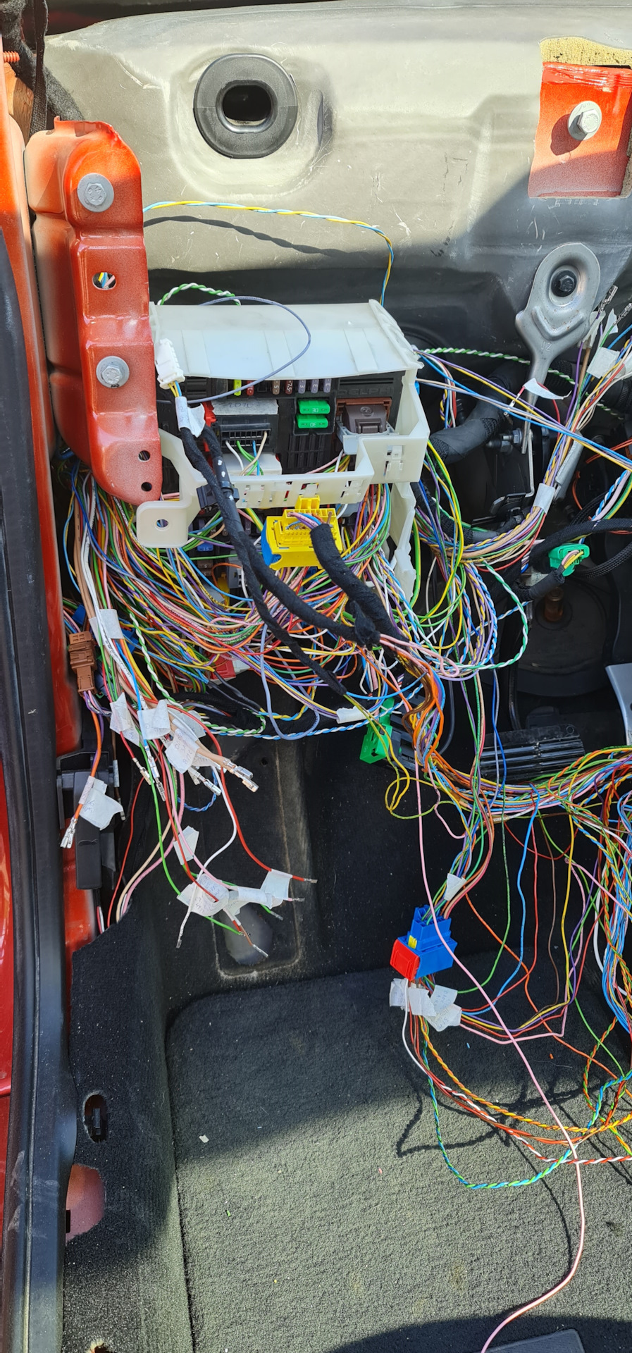 В салоне пришлось повозиться, чтобы перепиновывать основные провода, которые позволят запустить BSI уже непосредственно в авто.