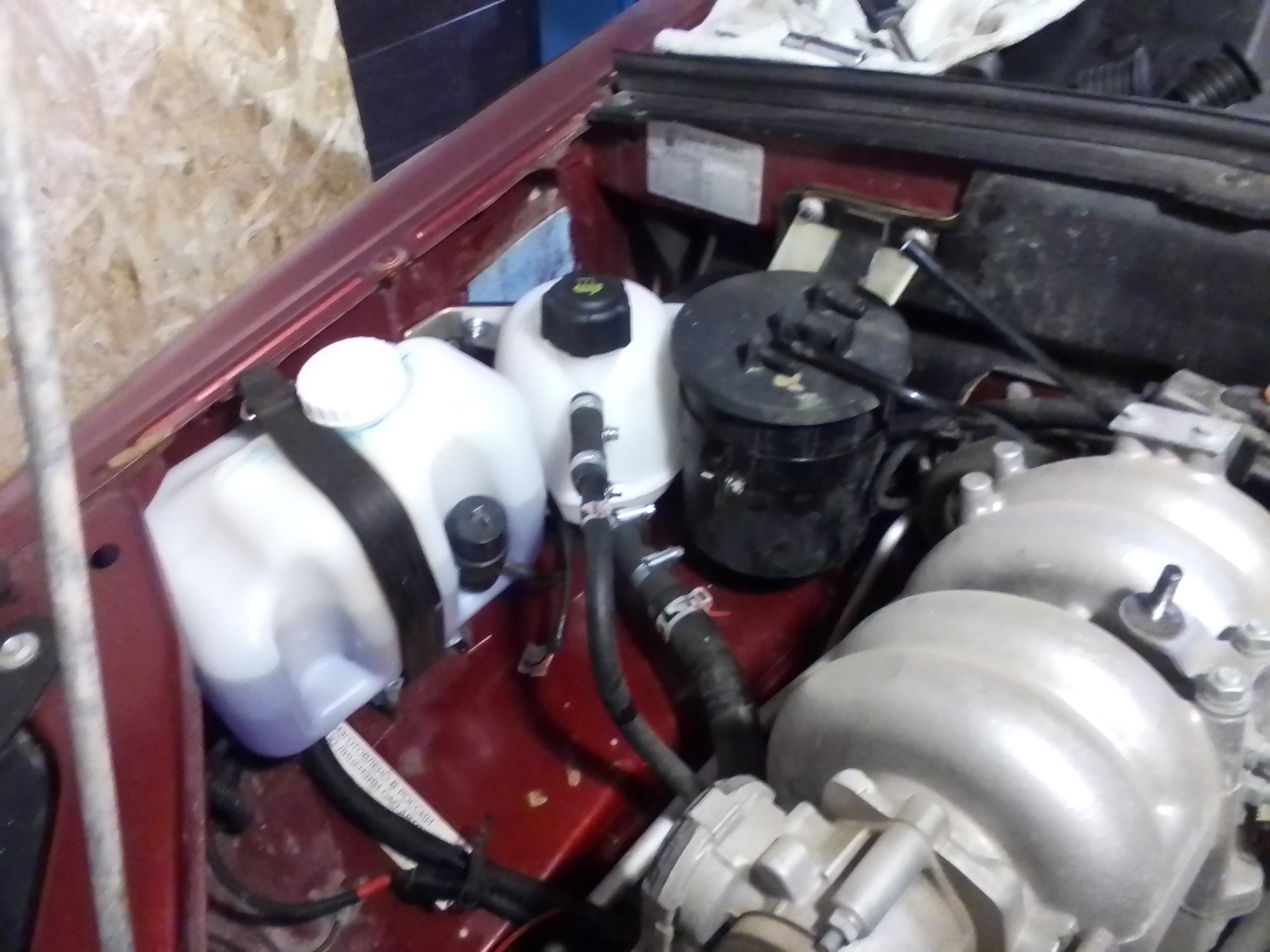 Пока едет заказ, меняю в машине Тосол, пользуясь времянкой из заклеенного сантехлентой бачка. Процедуру замены описывать не вижу смысла — за 20+ лет выпуска Нивы об этом уже написали всё, что можно написать.