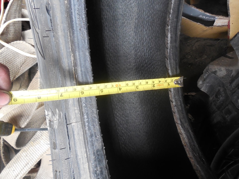 Расчет дал ширину: 204 (диск между хампами) — 20*2 (ширина шины) + 6 (расстояние на сжатие резины) = 170 мм