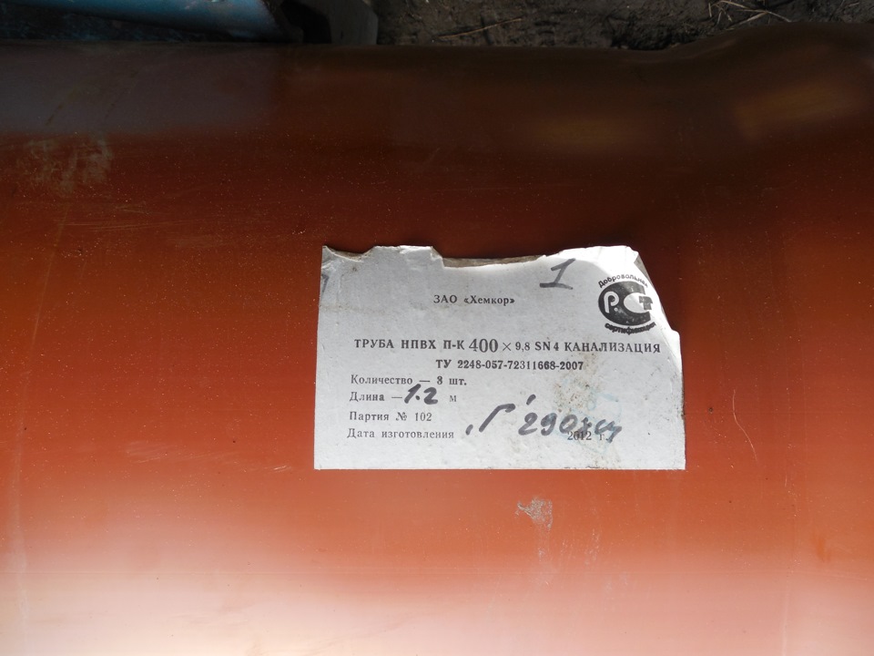 В общем приобретена труба ПВХ канализационная 1,2 м. 400мм