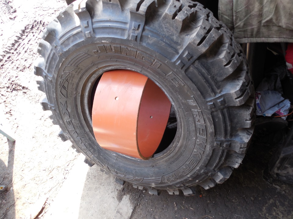 Когда первый раз делал то брал запас на сжимание резины по 3мм на сторону (как в этом блоге)… наивный был :) погнул обод, резину хрен сожмешь. В следующий (посмотри дольше бж, собирал этой весной) раз запас не оставлял, все собралось гораздо проще. По сути зачем сжимать резину, кольцо служит как бы ободом с внутренней стороны и резине некуда деваться, даже если там не в упор будет. Сдувался до 0.2 и прыгал по бревнам — никаких проблем. Единственное если кольцо более плотно сидит к шине то меньше шансов что попадет мусор или травить будет на низком давлении. И совет- перед тем как собирать нужно попробовать отдельно кольцо на диске как будет сидеть, а то бывает что хамп с одной стороны больше и кольцо на него не лезет, я чуть по внутреннему диаметру подтачивал