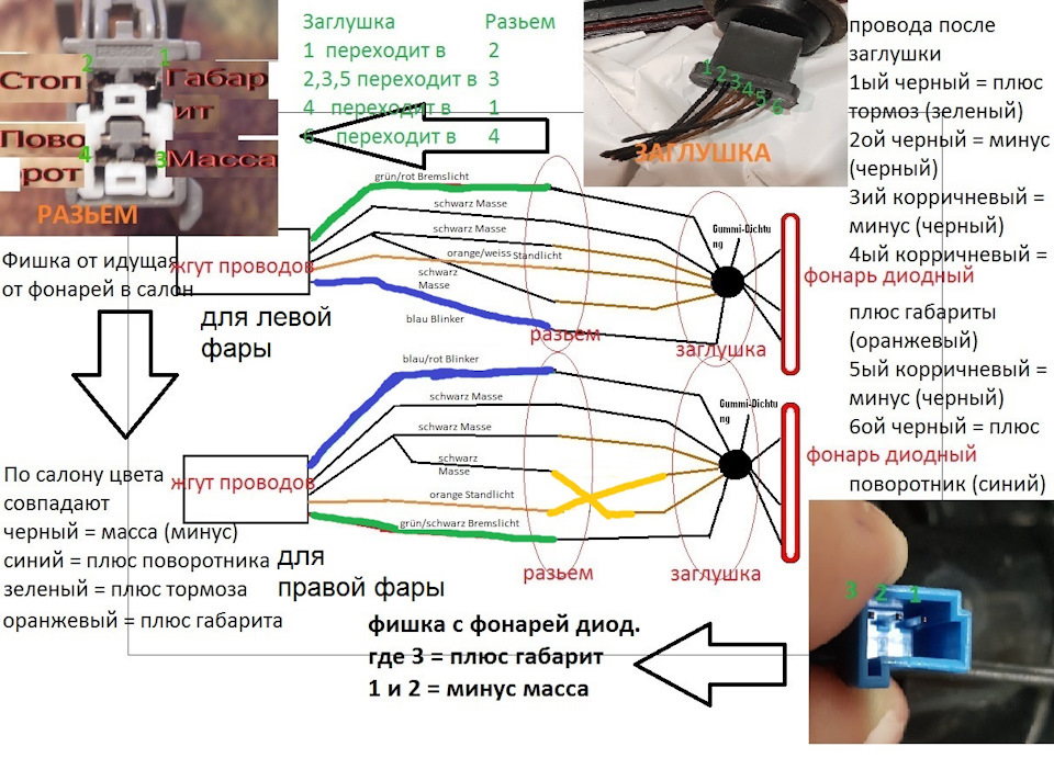 Снял старые, отчистил от г.вна скопившегося под фонарями, припаялся и установил новые. Со схемами помог автомобиль автора "nosound", "Подключение диодных задних фонарей на ДОРЕСТРАЙЛ!" . Схему его прилагаю.