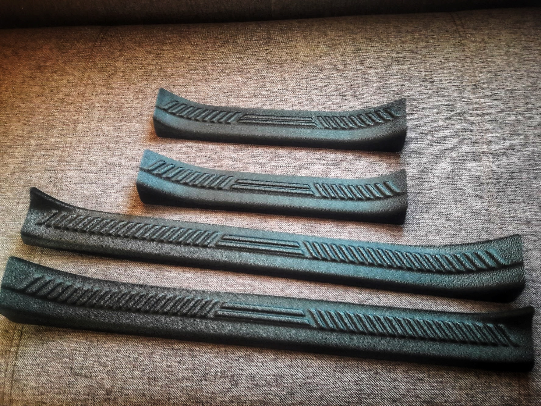 Как известно, после малярно-кузовных работ левый порог у старика оказался новым, точнее, чужим. Вернуть на него блестящие турецкие накладки не представилось возможным по причине их деформации при аварии, а еще больше, при демонтаже, да и нержавейка эта, если честно, за десять лет уже изрядно поднадоела. Пластик от “Русской Артели”, по мне, выглядит не менее эстетично и даже более практично, поэтому я решил накласть именно его.