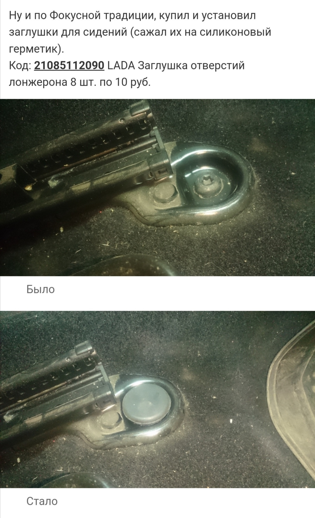 У меня такие же, просто валяются, клеить не стал герметиком. Тут в посте какие то более правильные показались, так как закрывают лучше дырень с болтом) поэтому в глаза бросились