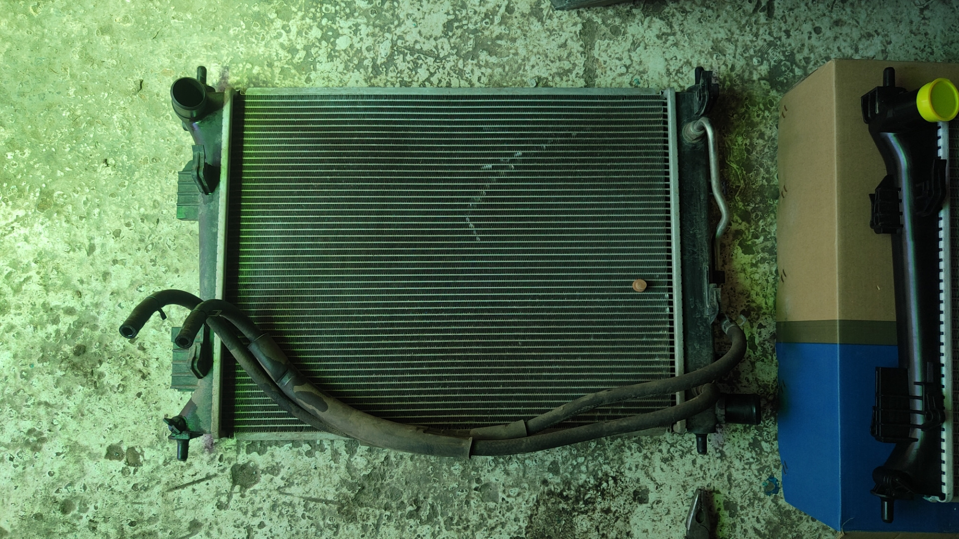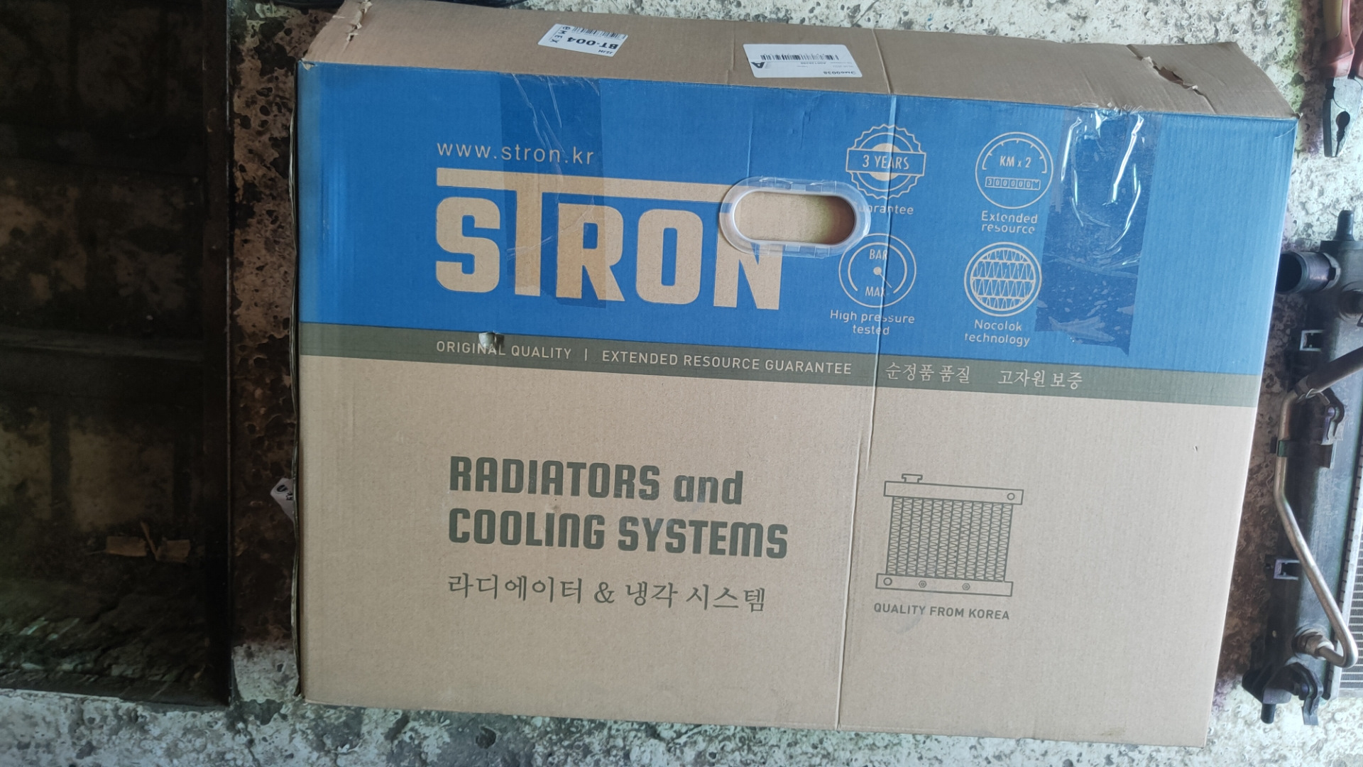Жары еще нет, а на бортовике температура акпп уже 100 градусов по трассе в спокойном стиле. Решил заменить радиатор. Муки выбора привели к stron. Хотел лузар купить, но купил что купил. Для замены снимал бампер. На этом радике нет ушей крепления пластика который стоит с двух сторон радиатора, но пластиковыми хомутами все встало на свои места. Оригинальный радик просвечивается, соты не забиты и незамяты. Поездию отпишусь по температуре. В комплекте к радику лежали хомуты, перчатки и гарантийный талон.