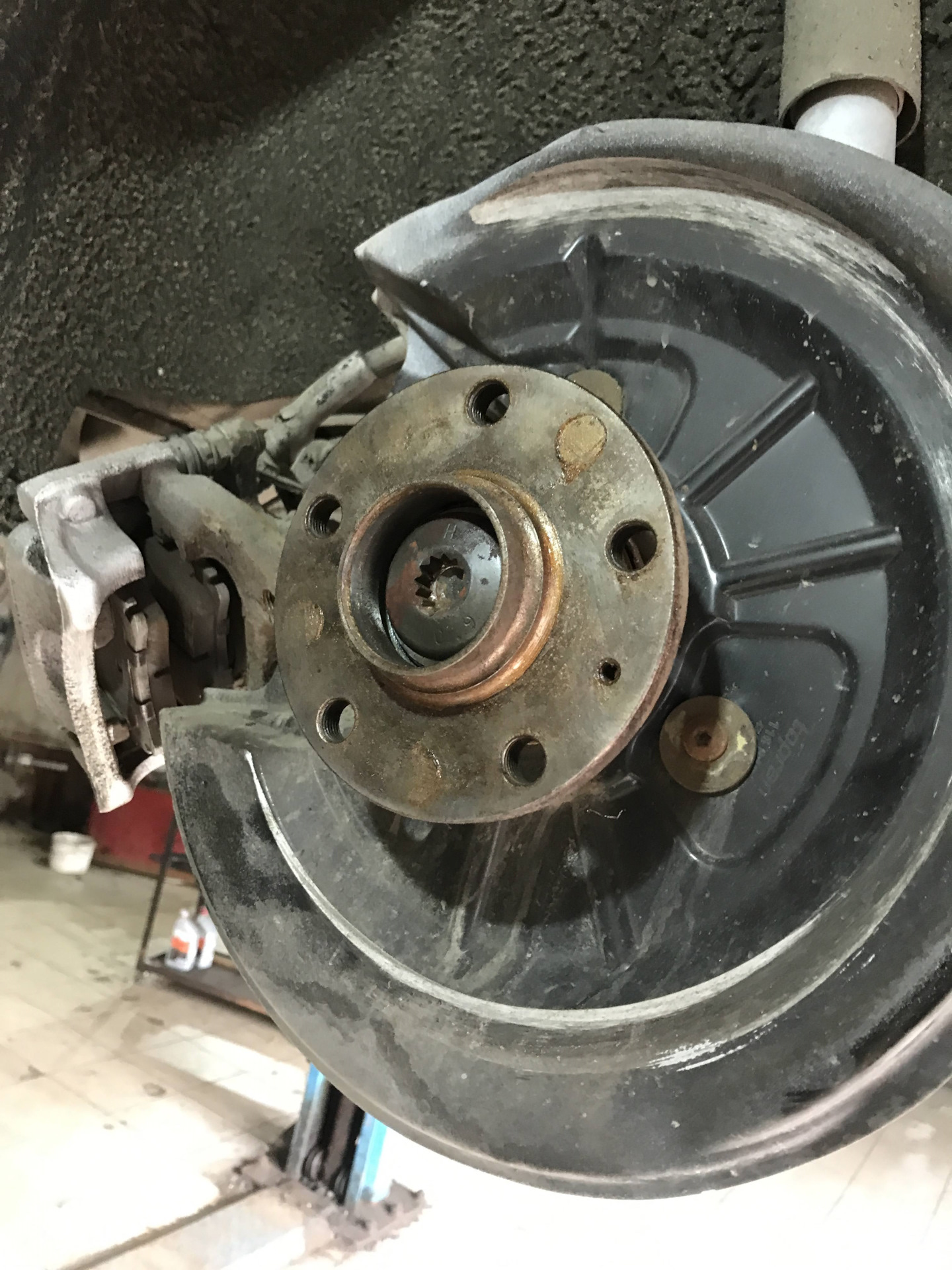 Долее, поехал к ребятам на замену, тяжело было открутить болт крепления, ступица еще родная была. Но, благодаря трубе и такой то матери была благополучно сорвана.