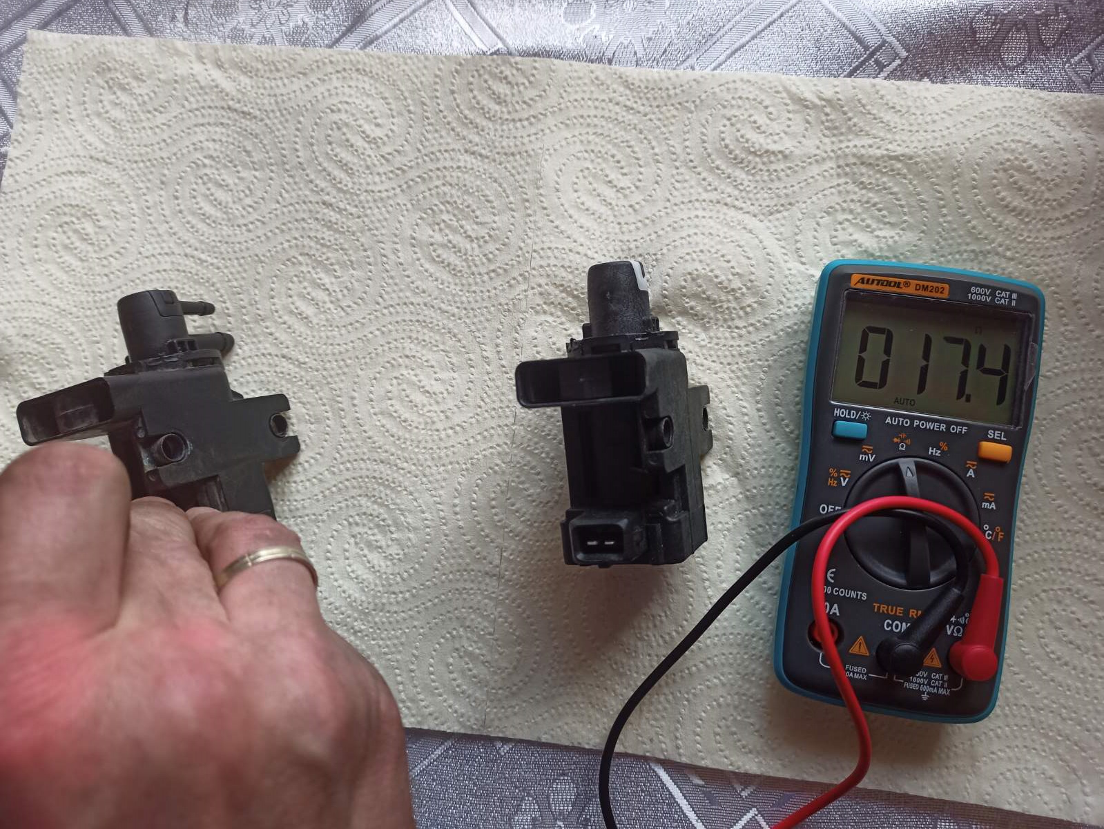 Процедура та же самая. Снятый клапан показал сопротивление 17,4.