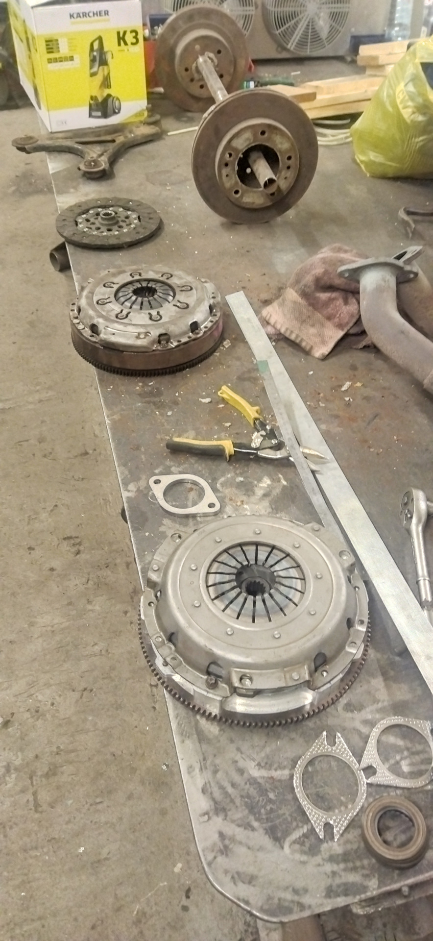 Ну а теперь о главном- установке алюминиевого маховика и новой сцепы. Поставил mecarm, хотел luk, но стоимость вызвала рвотный рефлекс). Поставил дизельную коробку, и о чудо теперь с первой по четвёртую разгонные, а пятая ммм наконец-то для трассы. Пятая — было 100км 3000об, стало 2200, я счастлив, теперь тишина в салоне, выхлопа не слышно)