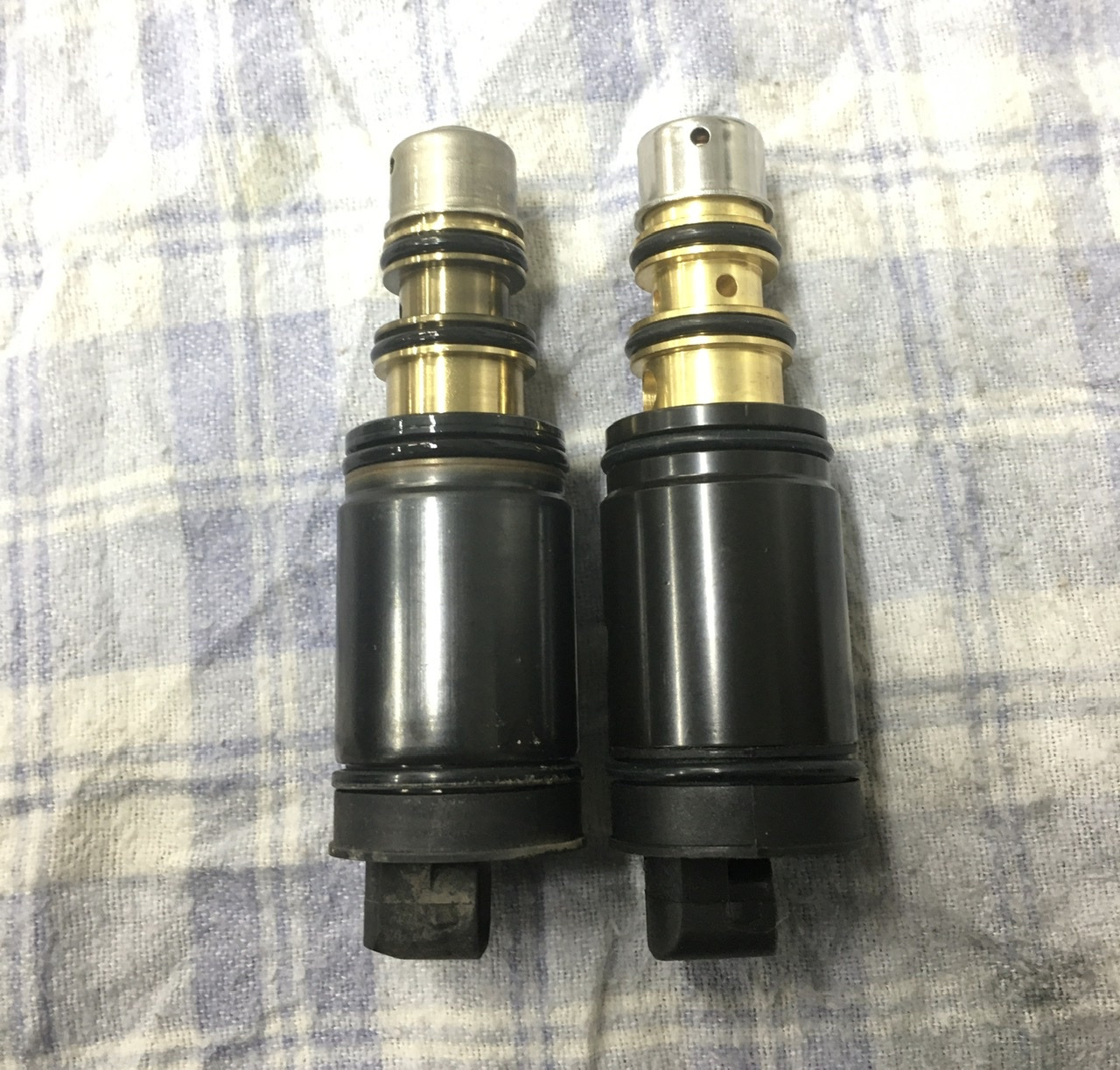Открыл капот, сфоткал номер компрессора, по номеру нашёл фото такогоже компрессора, там же и увидел форму разъёма клапана, в инете нашёл разновидность этих клапанов и мой клапан такой один, нашёл где можно купить, купил, поехал сразу откачал гас, этим же вечером снял компрессор, дастал, вымыл и продул зону вокруг клапана, вытащил клапан, сравнил с Новым, один в один 😊 заглянул в отверстия компрессора, там чистота, чистое масло стружки нет, воткнул новый клапан и все собрал, на все про все неспеша ушло минут 30-40, на след день поехал и заправлять кондей, пока мастер закачивал газ я достал старуху чтоб сбросить ошибку, при откачки газа в климате висит ошибка и пока ее не сбросить компрессор не включиться!