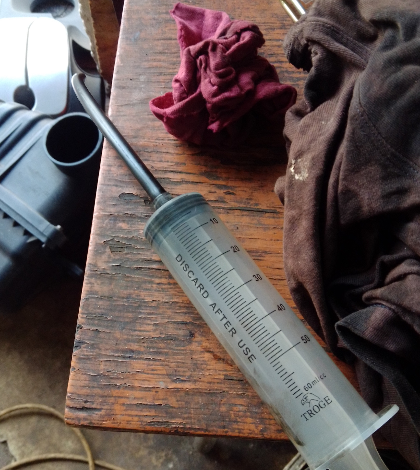 Масло оттуда выбираю шприцом. 50 мл — три-четыре захода.