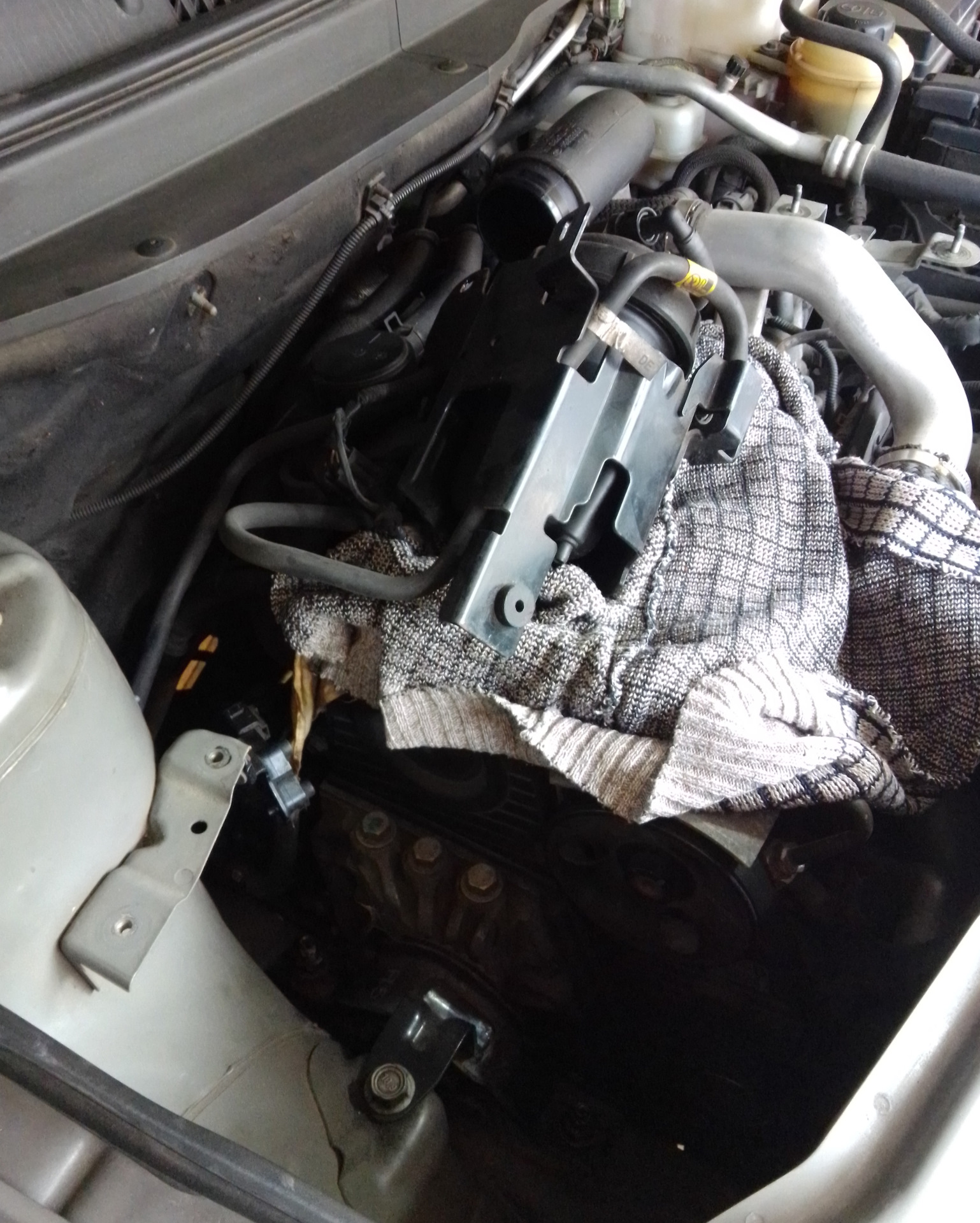 В целом процедура простая… Снимаю корпус воздушного фильтра, патрубок на турбину, крышку, и отвожу топливный стакан.