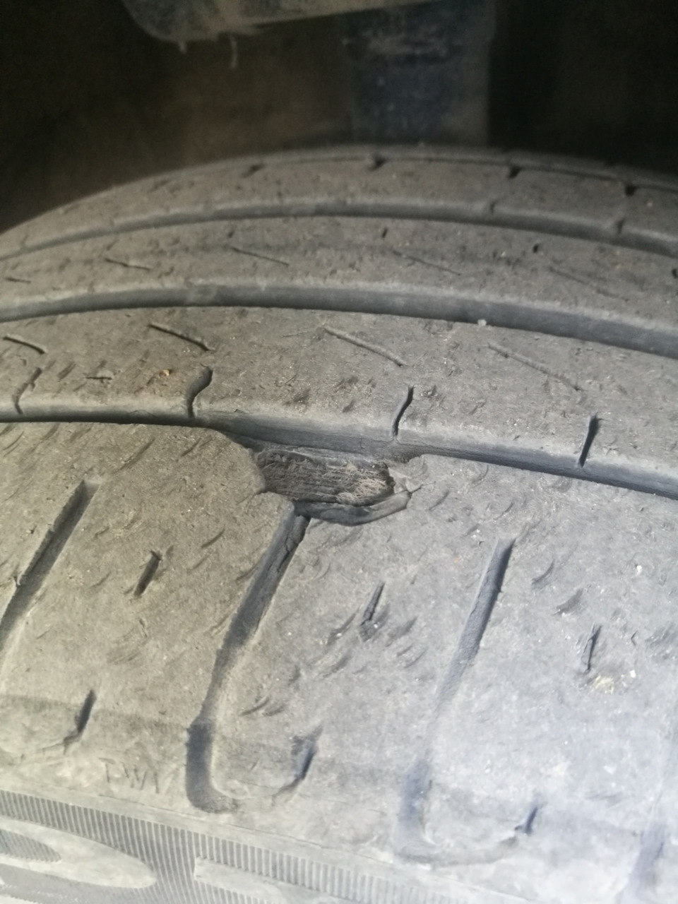 Доброго времени суток. Знатоки, посмотрите фото, отслаивается протектор на родной резине. Общий пробег на машине 53000. Минус зима и получаем примерно около 27 000 км. Я проехал на лете, состояние ужасное резины, внешний край давно сожрало, теперь ещё и отслаивается. Можно что сделать с этим безобразием, чтоб сезон докатать?
