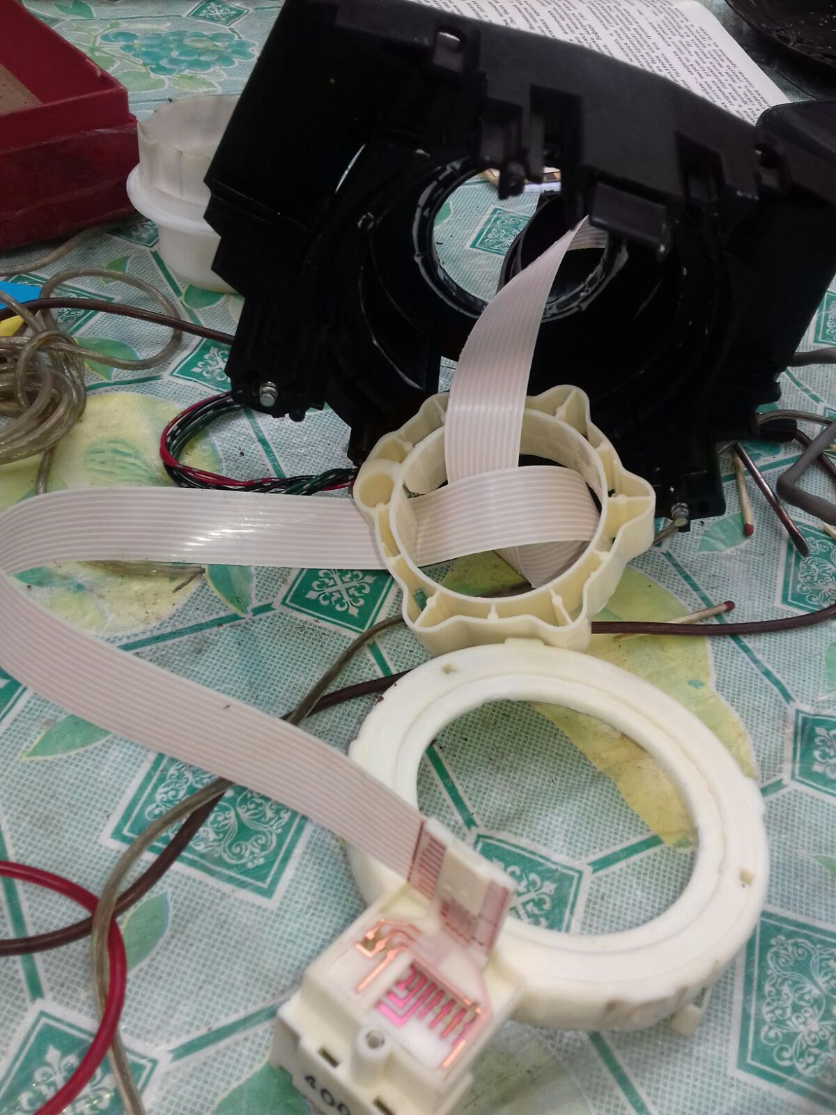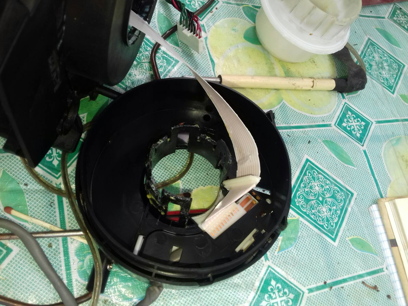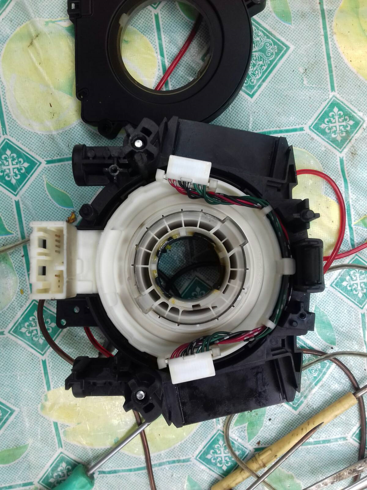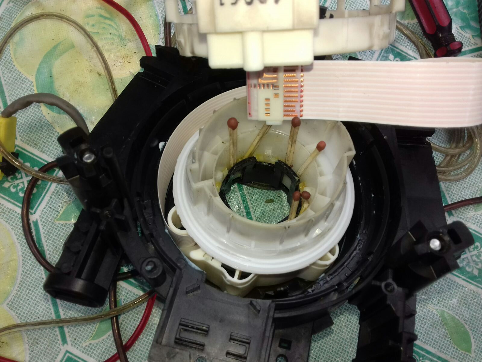 Недавно на панели приборов выскочил «беременный мужик». С помощью диагностической программы TECU3 выявлена ошибка В1049 – обрыв подушки безопасности. Мануал указывает на проверку жгутов, шлейфа и неисправность подушки безопасности. Первая разборка и проверка тестером на прозвон не выявила неисправность шлейфа. Подушка на обрыв не звонилась. После сборки ошибку сбросить не смог – она осталась активной. Интуиция подсказывала, что всё-таки проблема со шлейфом. После очередной разборки и прозвонки шлейфа уже не на обрыв, а на сопротивление оказалось, что одна дорожка шлейфа подушки имеет завышенное сопротивление. Значение не большое, но его достаточно для диагностики обрыва цепи. Хотя шлейф звонится на прозвон идеально. С помощью иголки нашел проблемное место. Зачистил и спаял. Надо сказать, что шлейф 11-пиновый, а задействованы только 10 пинов. В моём случае запасной пин оказался в обрыве. Можно было перекинуть пины и дальше пользоваться без ремонта самого шлейфа. Буду экспериментировать на сколько хватит такого ремонта, а то уж очень сильно раздражал мигающий «беременный мужик». Новый шлейф купить всегда успею. Сборка и разборка самого шлейфа – ещё тот ребус, но я его собрал. Хорошо, что старался все этапы фотографировать. После сборки и установки всё на место ошибка сама не исчезла. Пришлось сбрасывать с помощью программы TECU3. Теперь приборка радует глаз. Вот такие особенности дефектовки шлейфа и его колхозного ремонта.