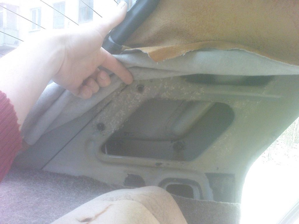 Прорези для ремня сквозь обивку потолка сделал на 9 см ниже болта верхнего крепления.