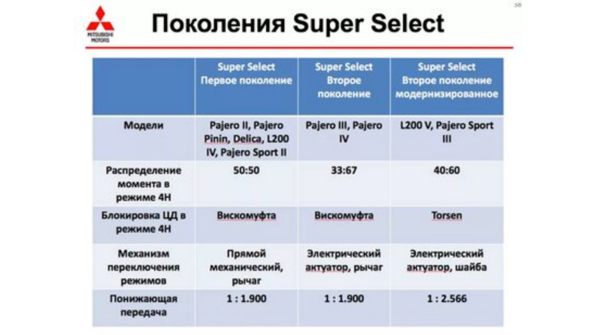 Нет, там первый, как на Паджеро 2. На суперселект 2 дифференциал несиммеиричеый. А вот на МПС3 не совсем супер селект2 стоит, тут я уже для себя открытие сделал.