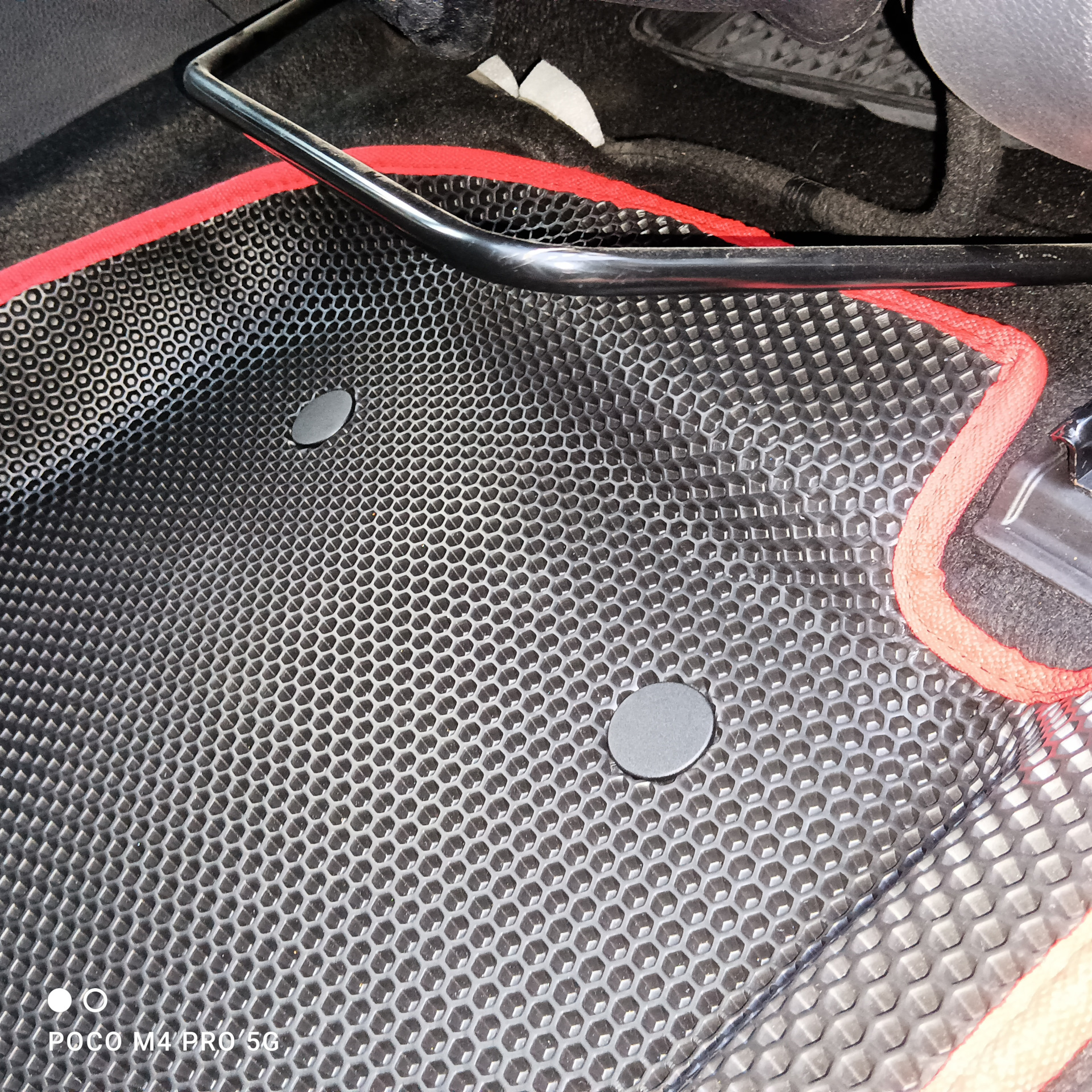 Водительский коврик: лапка литая; материал формован и закрывает всю площадь под педалями; высокие борта; заход под сиденье, клеенный подпятник, логотип, заводские клипсы.
