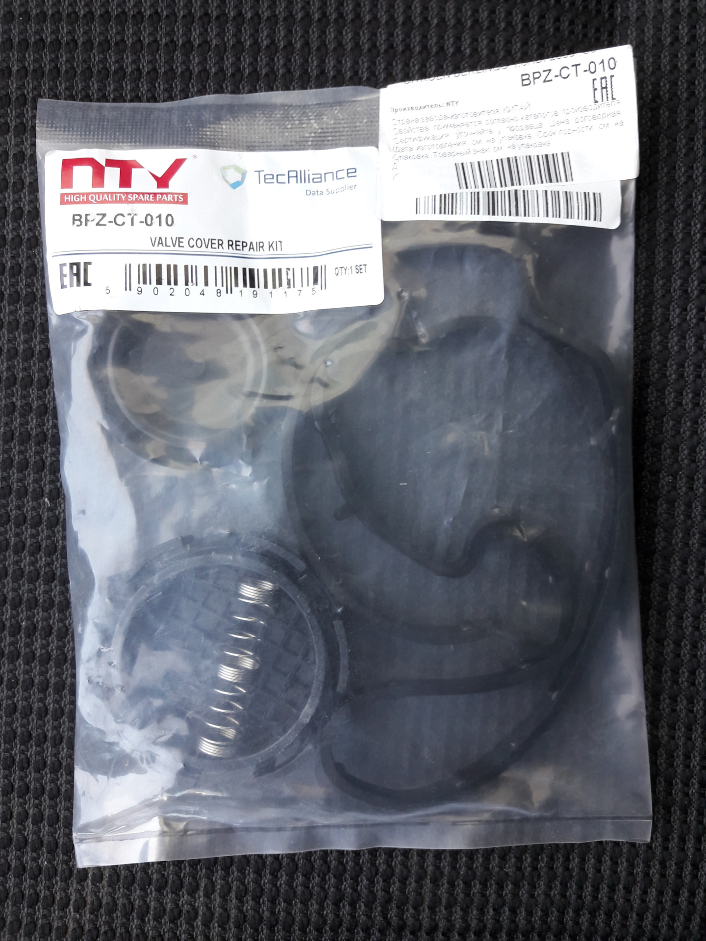 Купил взамен вот такой ремкомплект: NTY BPZ-CT-010. Вскоре заменю и прокладку самой клапанной крышки. Ещё в продаже есть отдельно резинка клапана: NTY BPZ-CT-005.