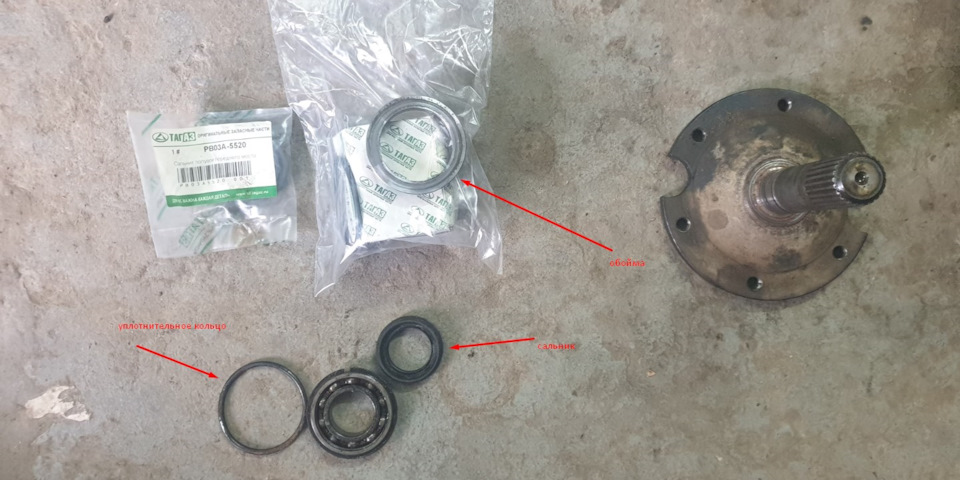 Пошатав за полуось, обнаружился неплохой радиальный люфт в подшипнике. Заказал комплект из подшипника, сальника и уплотнительного кольца обоймы сальника в РнД за 2500. Попутно, раз уж вынимать левый привод, решил по нормальному сделать втулки под наружние шруса, а не как в прошлый раз, тем более что люфт приводов в кулаках увеличился. Для этого понадобится либо варить кондуктор для привода в сборе, либо снимать наружние шруса чтобы отвезти к токарю, так как опорная поверхность у меня имеет неравномерный износ.