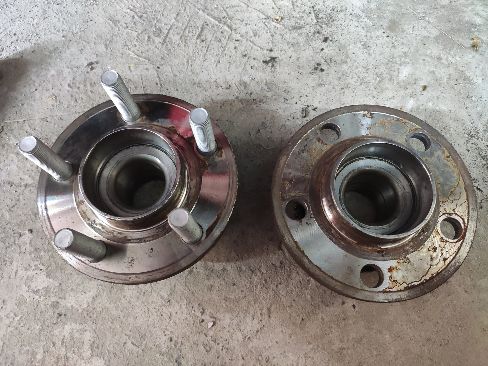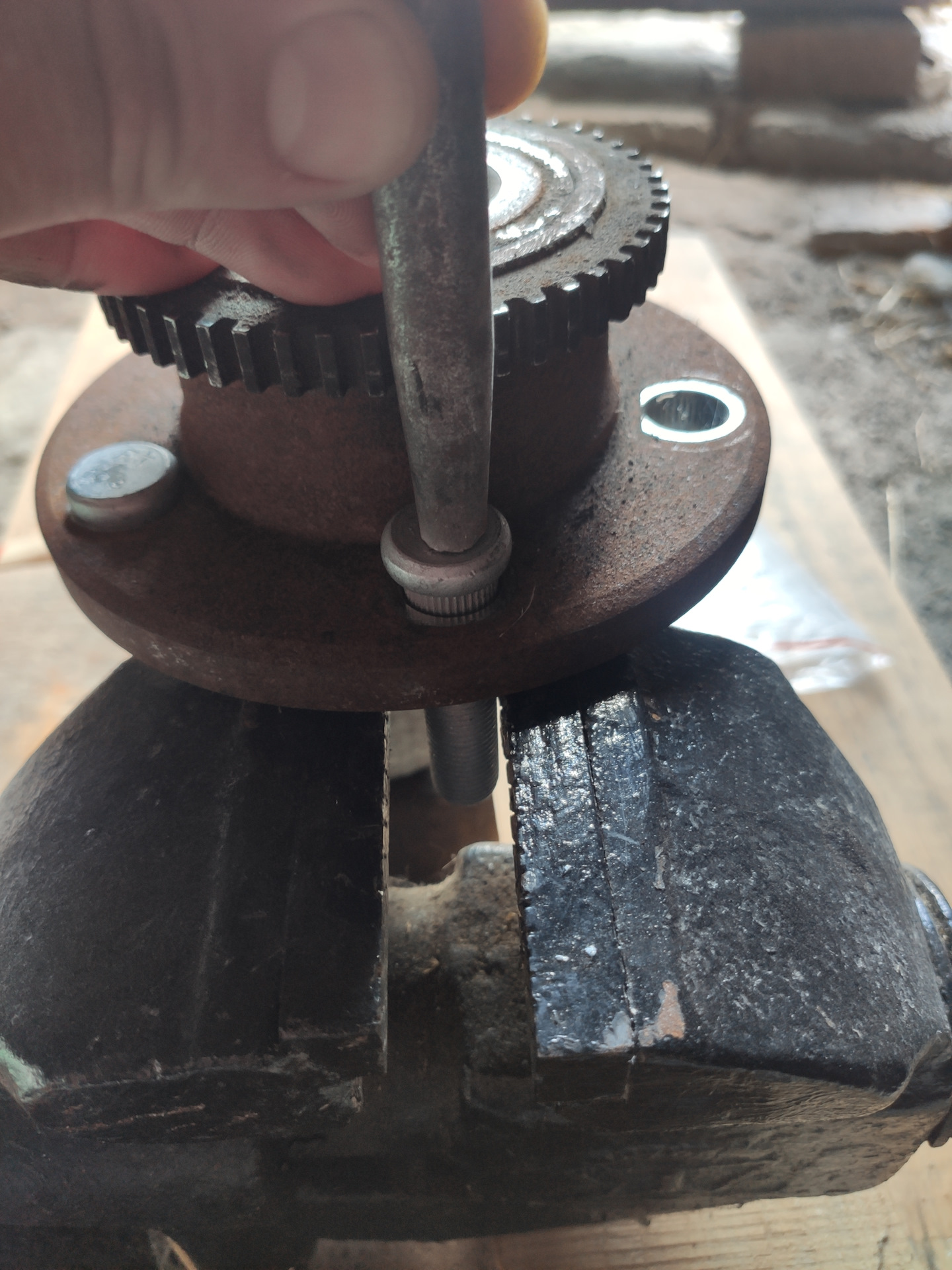 • Выбиваем старые шпильки со ступицы. Просто несколькими ударами молотком по самой шпильке. Ступица при этом не повреждается и старая шпилька тоже пригодна для дальнейшей эксплуатации.