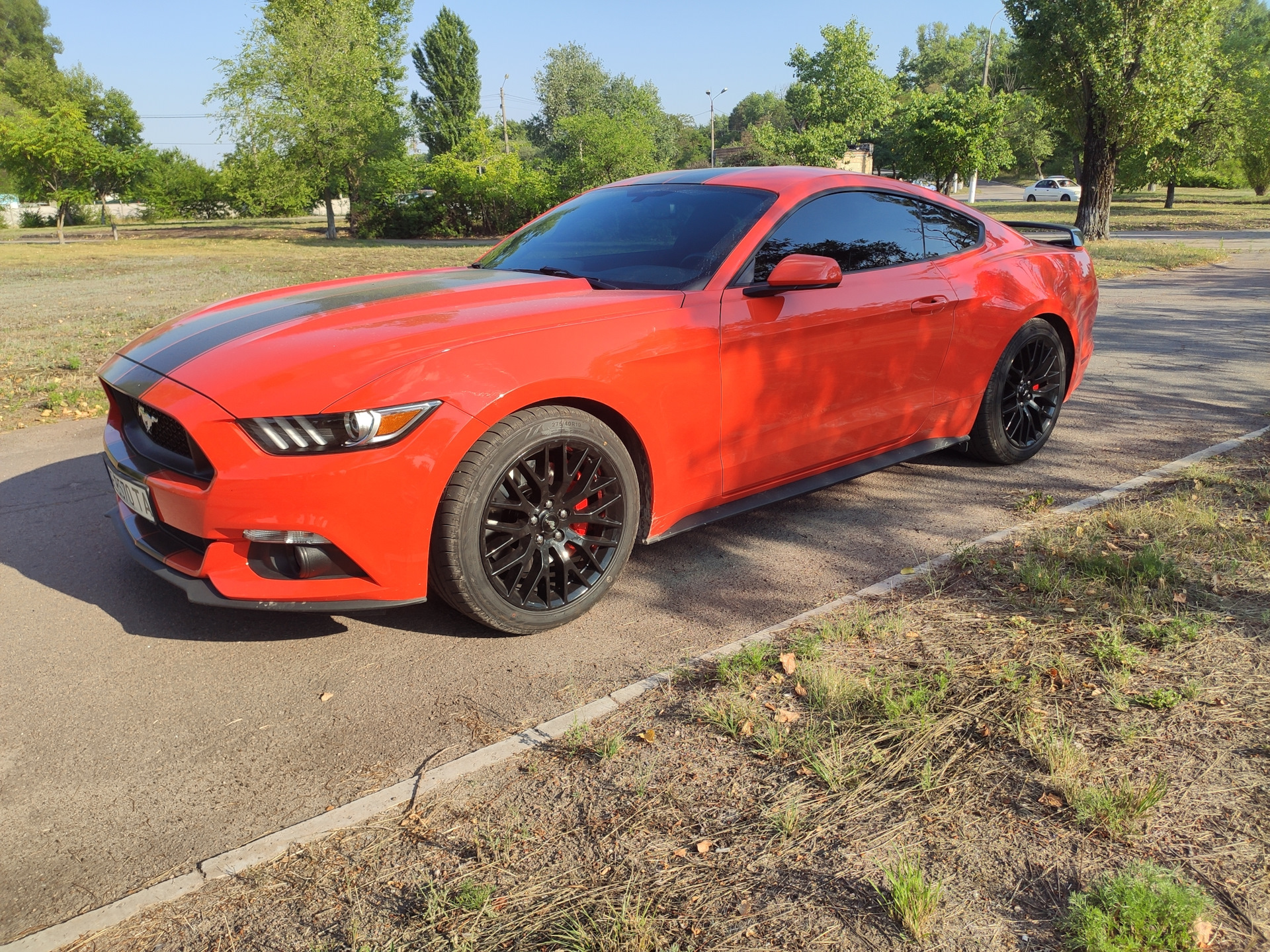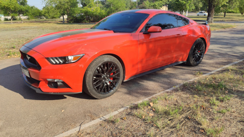 С приобретением Ford Mustang G6 3.7 2016 года в лучшем, по моему мнению цвете CY Competition Orange, я задался целью поменять стоковые 18-е катки на 19-е от GT PP, а также поменять стоковые 2-х поршневые передние суппорты на 4-х поршневые. Также установить колодки для Muscle car, на перед Power Stop Z26, на заднюю ось Power Stop Z23.