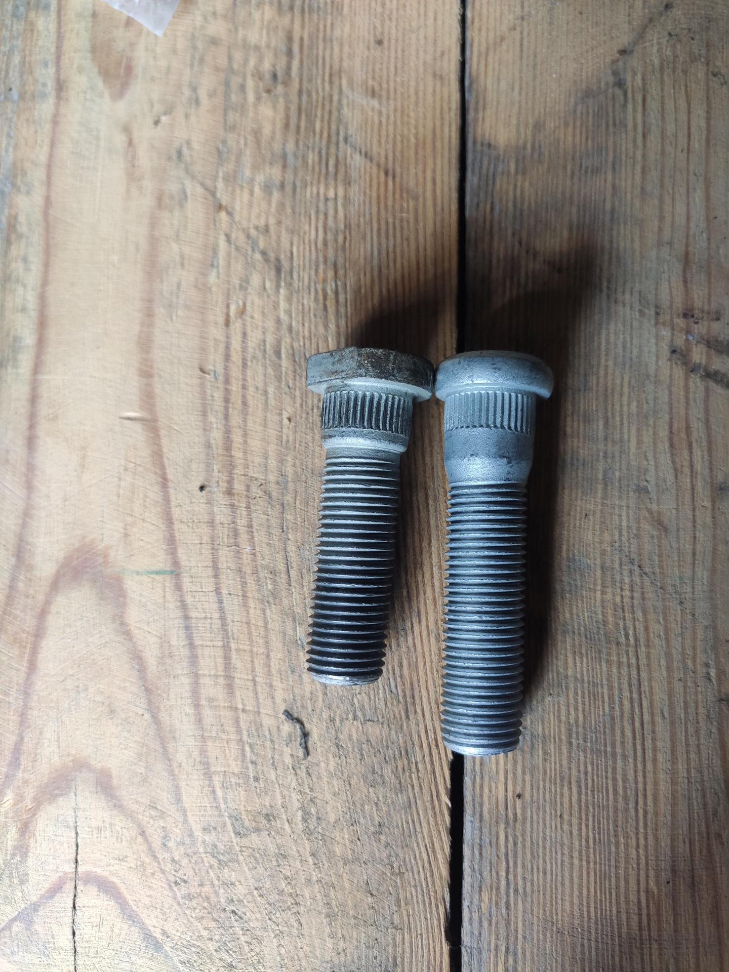 Для надежности и безопасности крепления дисков я решил поменять ступичные шпильки на удлиненные. Родные длинной 55 мм., новые 67 мм. Шпилька М14х1,5 с забивной частью 15,8 мм.