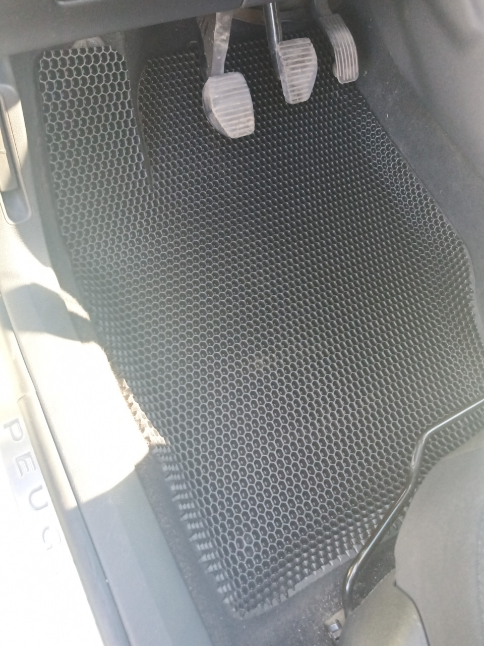 Всем привет. Образовалась дырочка в коврике водителя, ну не менять же комплект из-за одной дырки)) Купил в Леруа ева коврик за 450р, вырезал, вдавил, готово!