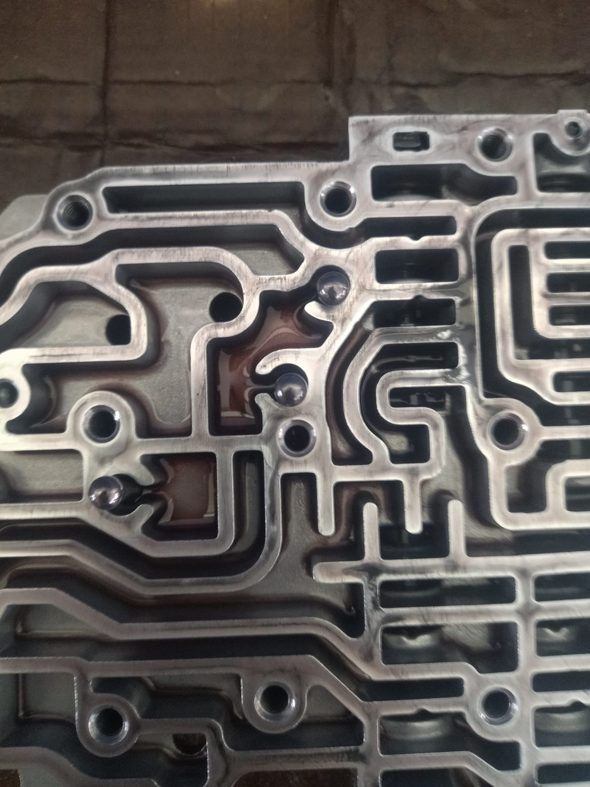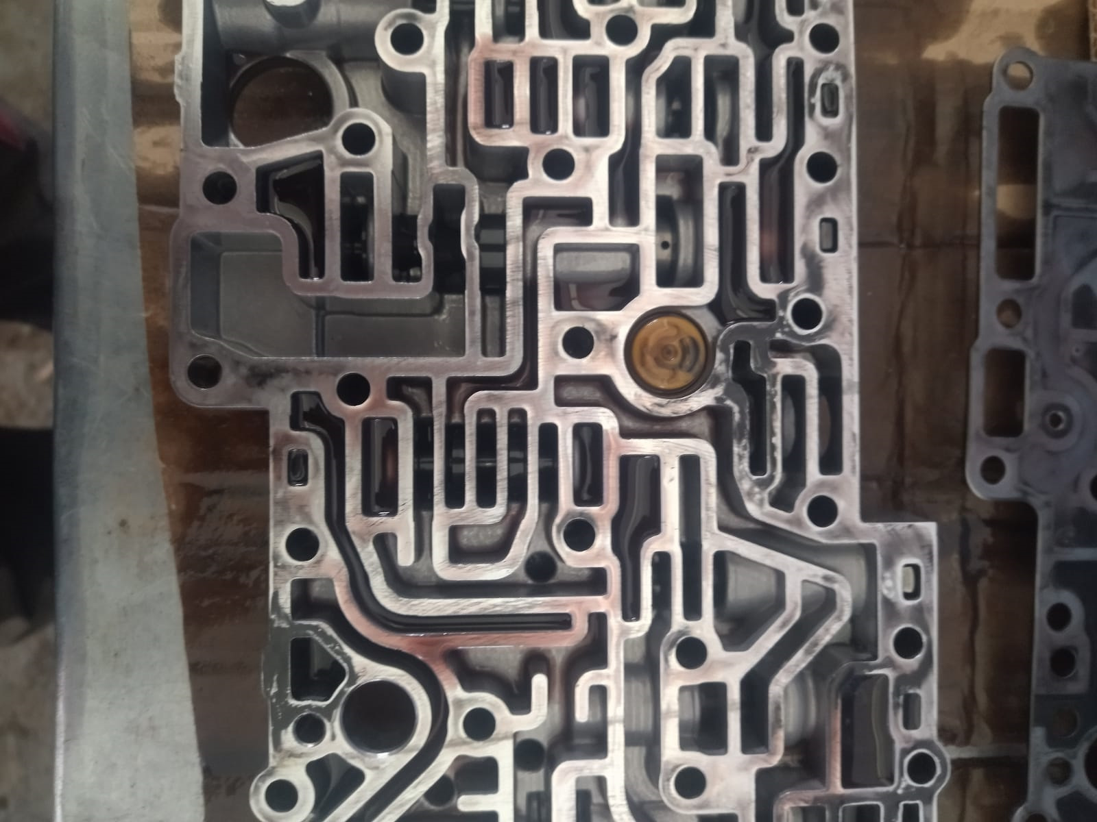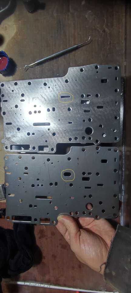 Также решили сразу поменять пластину гидроблока, т.к. уже началась появляться выработка от шарика, который двигается при переключении между D и R, что со временем приводит к толчкам при переключении селектора.