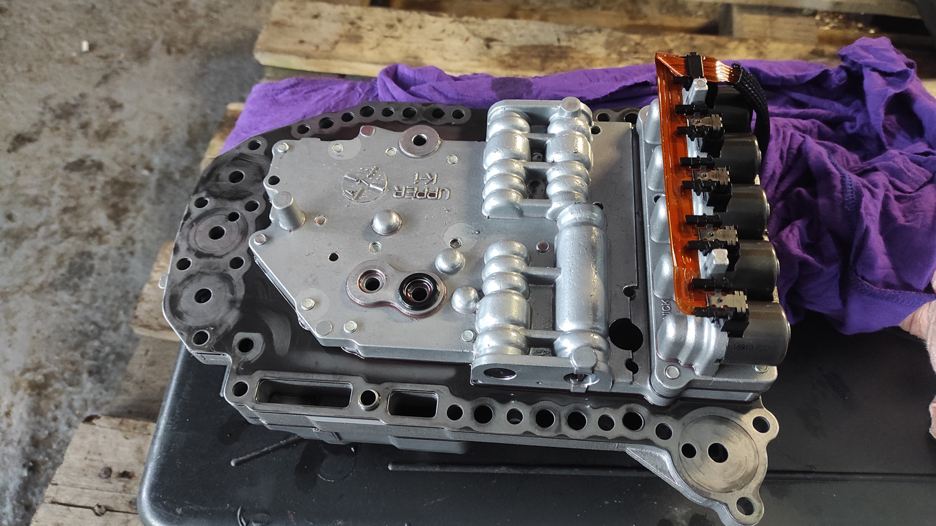 Поскольку фрикционы оказались в норме и ничего особенно подозрительного в коробке выявлено не было стали думать дальше. Изучение матчасти привело к следующему выводу — при включении 4-й передачи давление масла в гидроблоке максимальное. Проверка клапанов-соленоидов на сопротивление дала идеальные результаты, точное число не помню, но точно то что написано в книжке. Но всё же решили поменять клапан линейного давления, возможно что он из-за этой грязи в масле мог приводить к изменению давления.