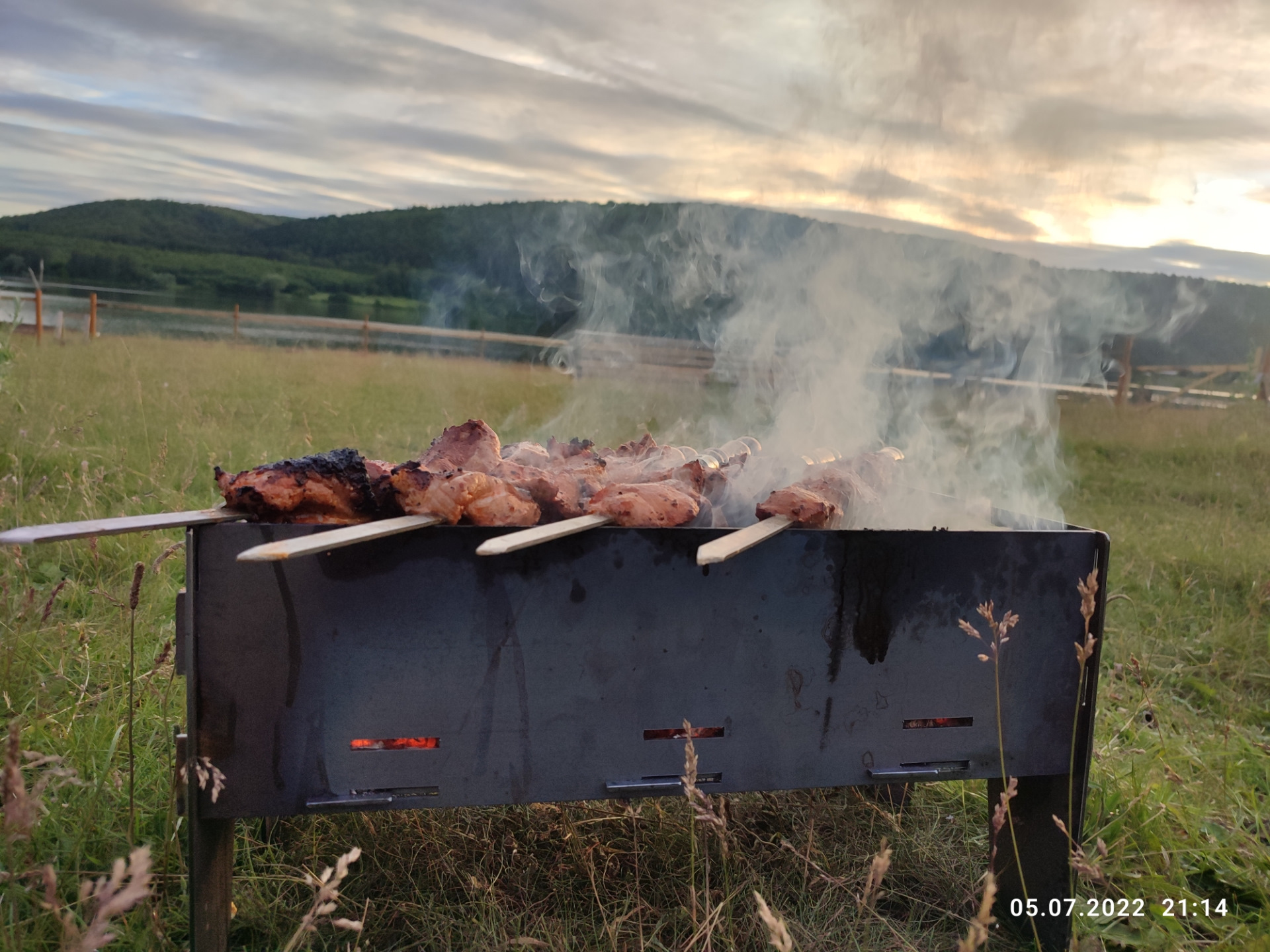 Насаживаем мясо и ждём, красота…тишина, чистый воздух.😌😌😌 а запах…запах мяса на углях это просто восхитительно 🫣