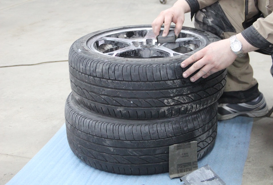 Но прежде чем поменять, я решил подвергнуть диски небольшому стилистическому изменению, потому что во первых, дизайн уже поднадоел, а во вторых всё чаще стал замечать такие же диски на других авто а быть как все я очень не люблю. Два диска с одной стороны я ободрал ещё в том сезоне, но не полировал.Так и проездил всё прошлое лето с одинаковыми дисками только со своей стороны.
